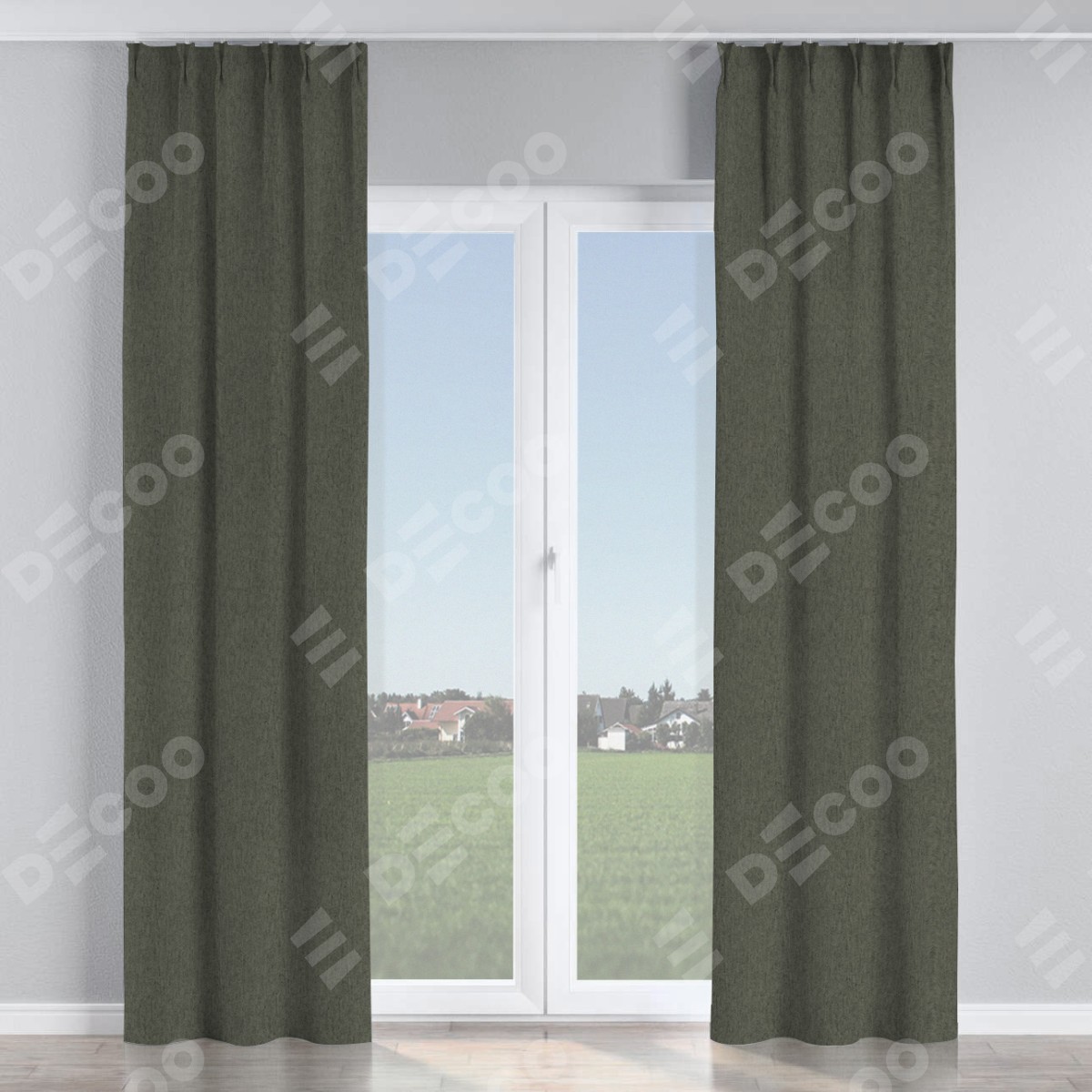 Комплект прямых штор, от производителя «Cortin», пошиты из ткани твид блэкаут тёмно-серый, артикул ткани 21587. С изнаночной стороны в верхней части штор пристрачивается шторная лента с декоративными складками «Кустик». Для создания элегантных складок прямые шторы шьются по стандарту с коэффициентом 1:2 (на 100 см. ширины проёма 200 см. ширины ткани).