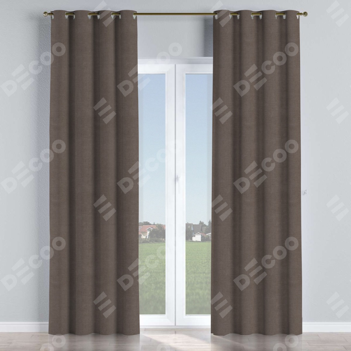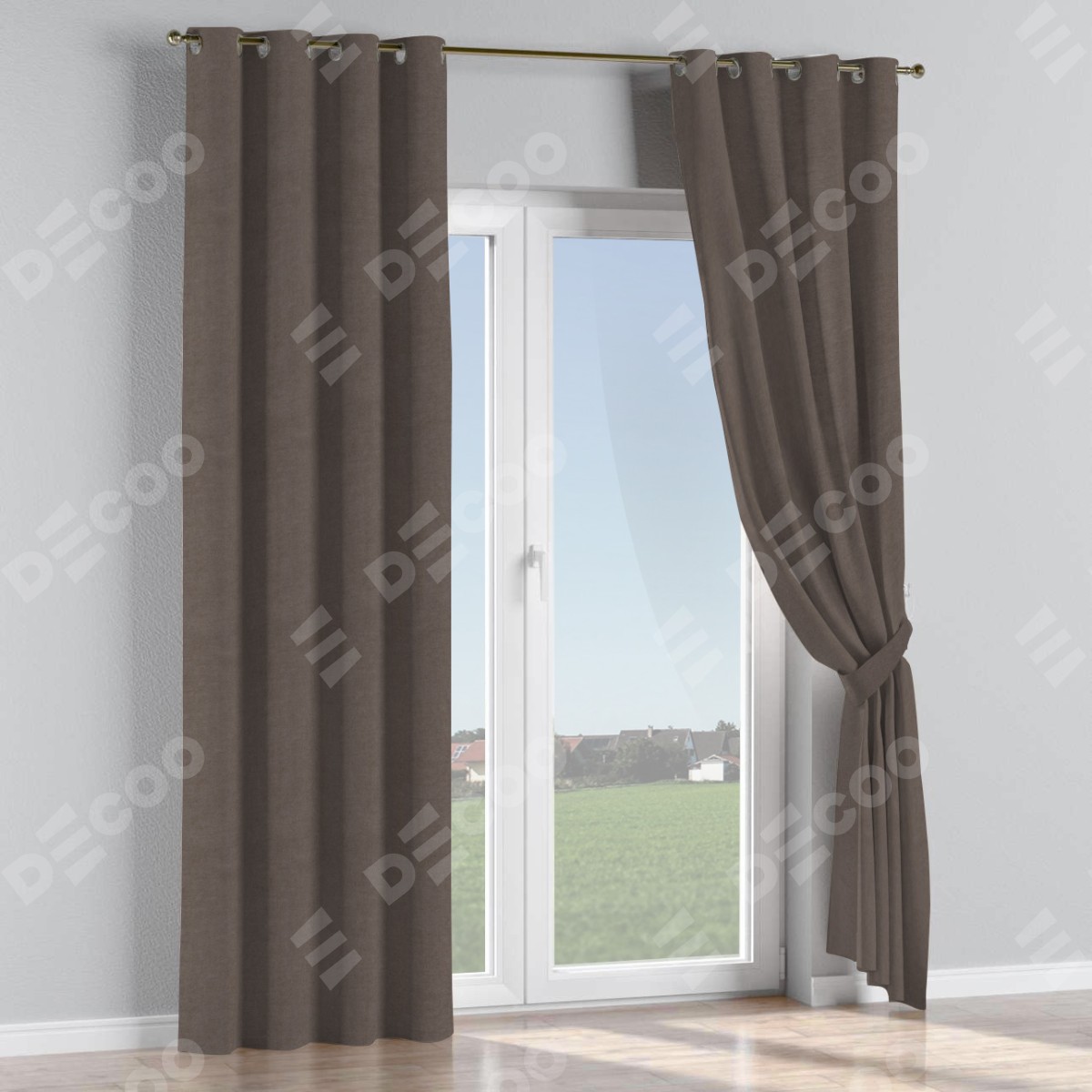 Комплект прямых штор, от производителя «Cortin», пошиты из ткани вельвет коричневый, артикул ткани 14135. Данная модель пошита на люверсах, комплектуется на выбор круглым карнизом и подходит для монтажа на стену или потолок. Прямые шторы на люверсах шьются по стандарту с коэффициентом 1/2 (на 100 см. ширины проёма 200 см. ширины ткани), отличительным преимуществом данной модели является простой способ монтажа. Достаточно повесить ее на трубу и штора готова!
