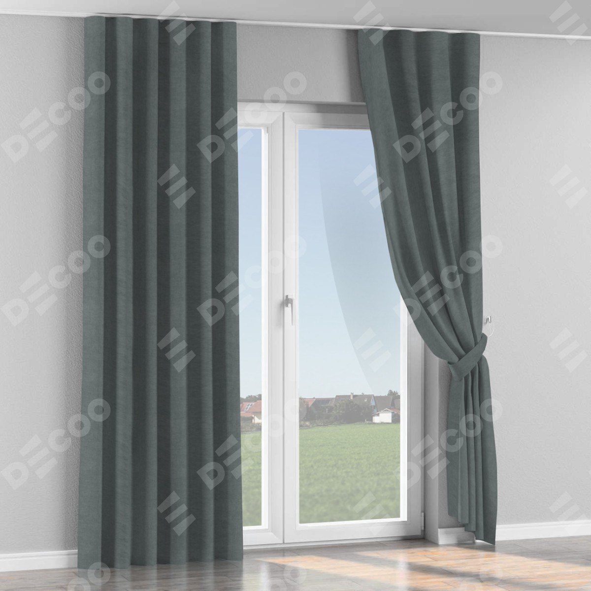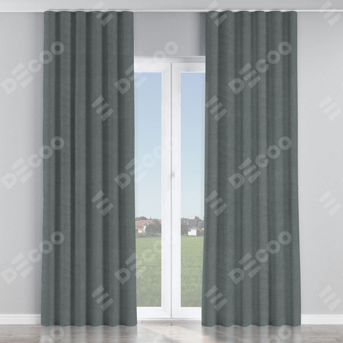 Комплект прямых штор, от производителя «Cortin», пошиты из ткани вельвет серый, артикул ткани 85542. С изнаночной стороны в верхней части штор пристрачивается шторная лента с декоративными складками «Волна». Для создания элегантных складок прямые шторы шьются по стандарту с коэффициентом 1:2 (на 100 см. ширины проёма 200 см. ширины ткани).