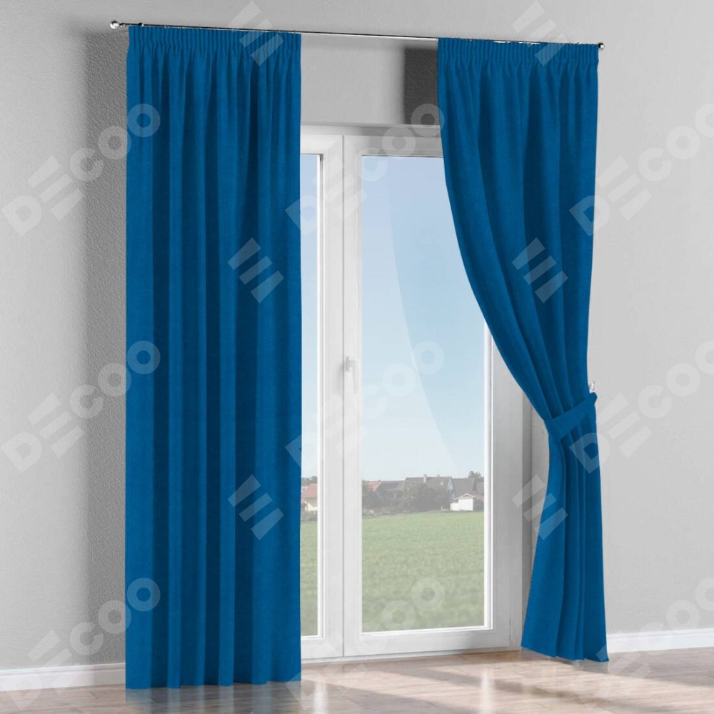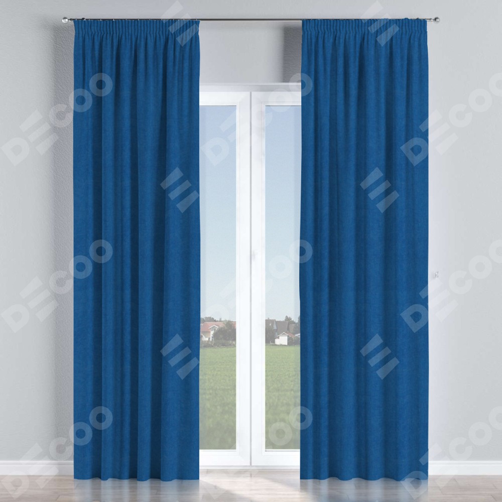 Комплект прямых штор, от производителя «Cortin», пошиты из ткани вельвет синий, артикул ткани 85554. С изнаночной стороны в верхней части штор пристрачивается шторная лента с декоративными складками «Карандаш». Для создания элегантных складок прямые шторы шьются по стандарту с коэффициентом 1:2 (на 100 см. ширины проёма 200 см. ширины ткани).