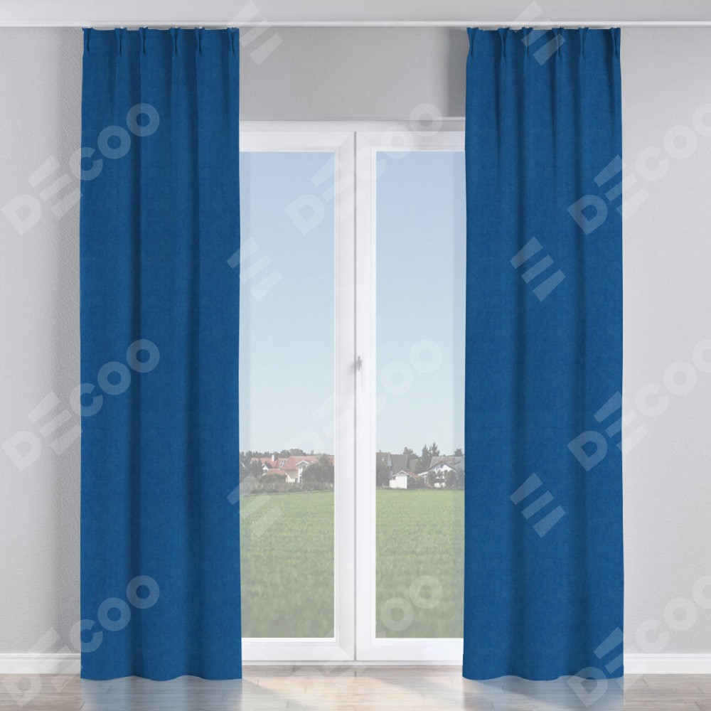 Комплект прямых штор, от производителя «Cortin», пошиты из ткани вельвет синий, артикул ткани 85554. С изнаночной стороны в верхней части штор пристрачивается шторная лента с декоративными складками «Кустик». Для создания элегантных складок прямые шторы шьются по стандарту с коэффициентом 1:2 (на 100 см. ширины проёма 200 см. ширины ткани).