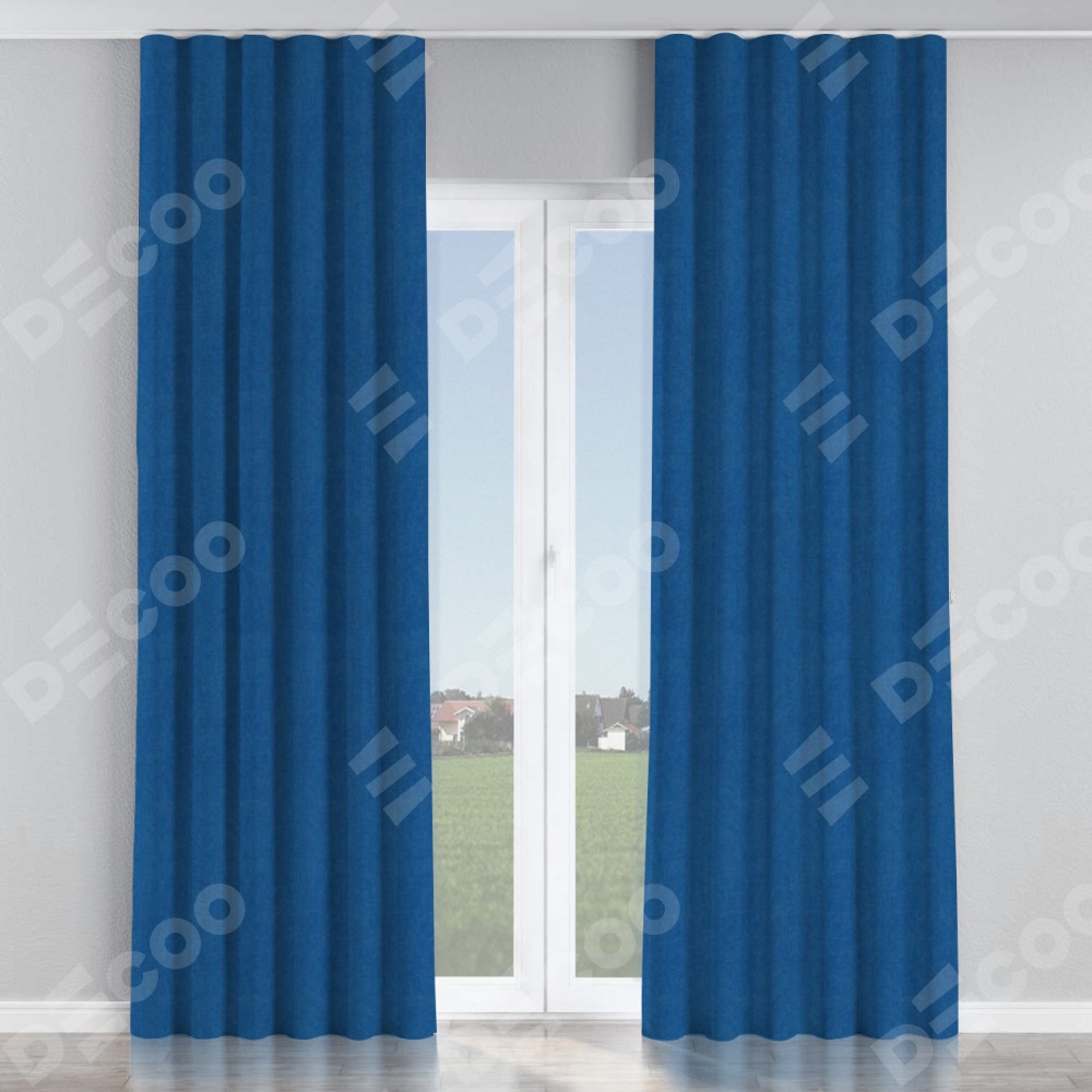 Комплект прямых штор, от производителя «Cortin», пошиты из ткани вельвет синий, артикул ткани 85554. С изнаночной стороны в верхней части штор пристрачивается шторная лента с декоративными складками «Волна». Для создания элегантных складок прямые шторы шьются по стандарту с коэффициентом 1:2 (на 100 см. ширины проёма 200 см. ширины ткани).