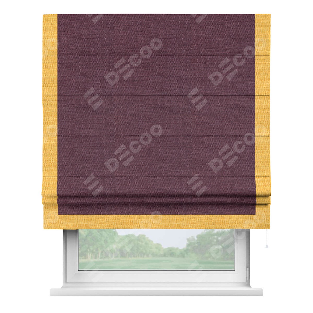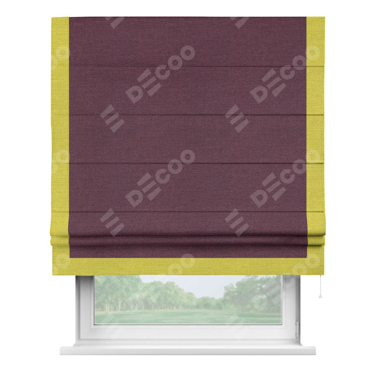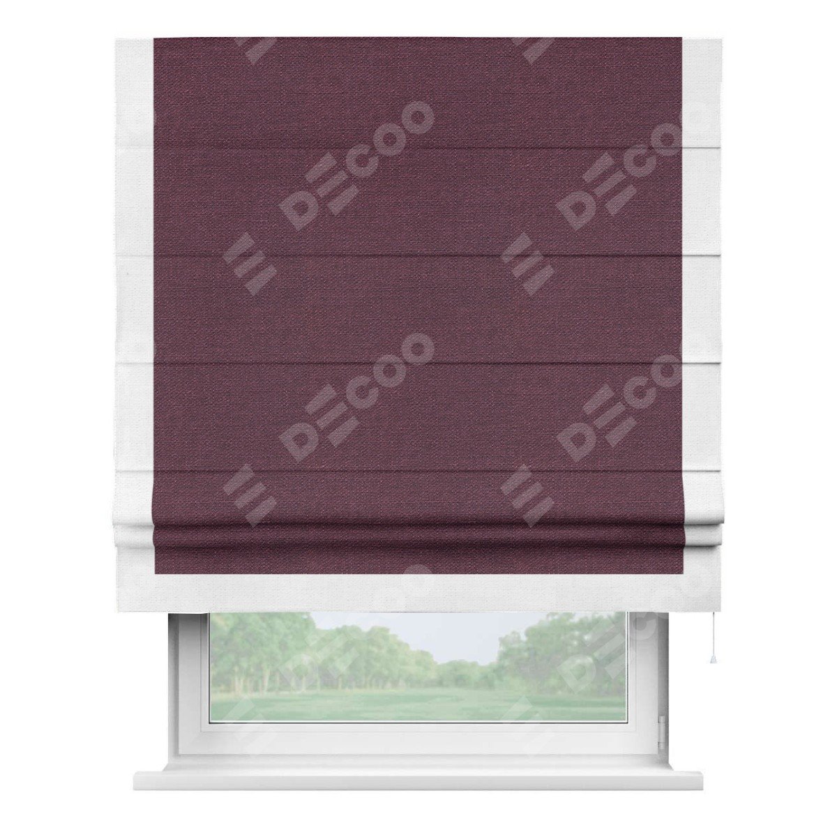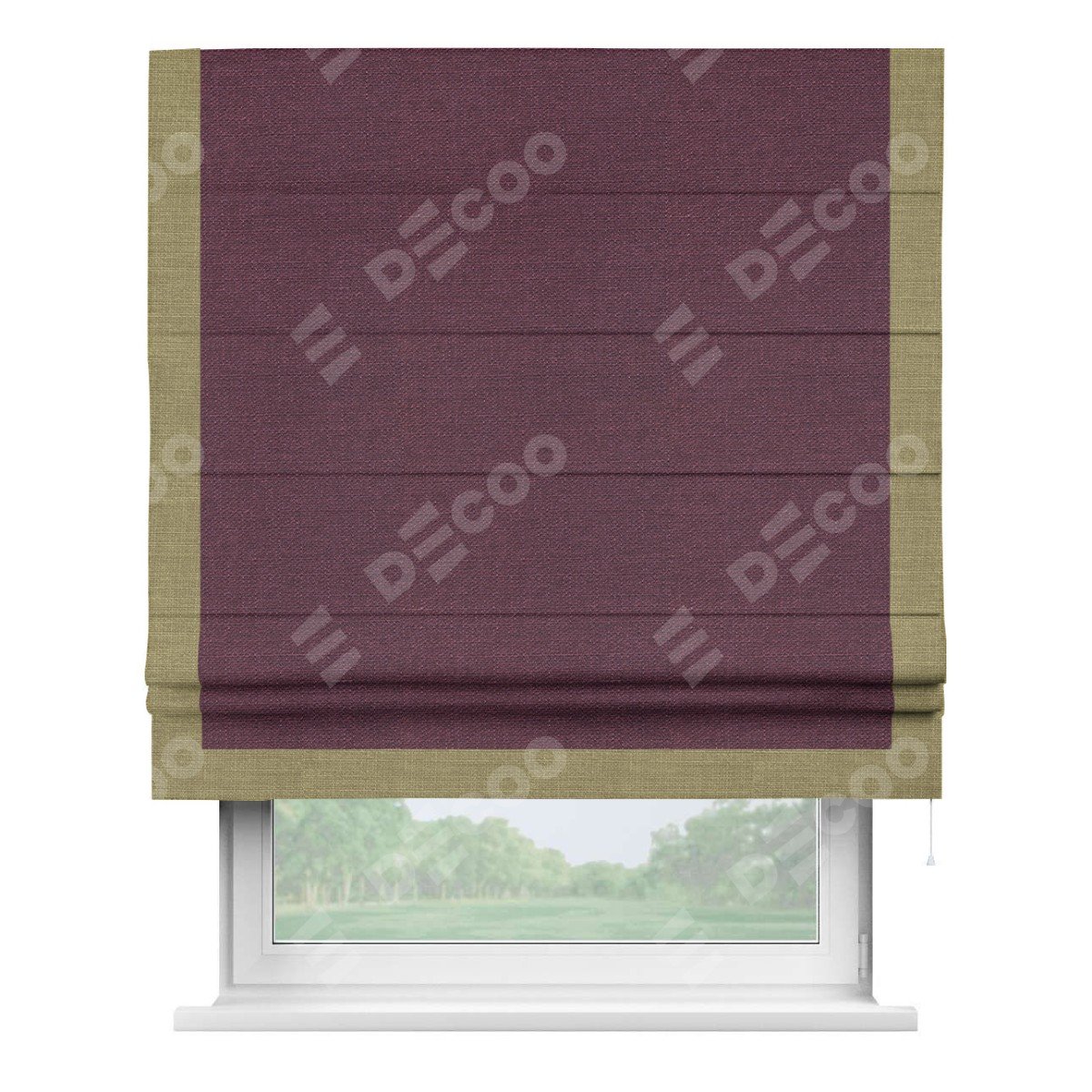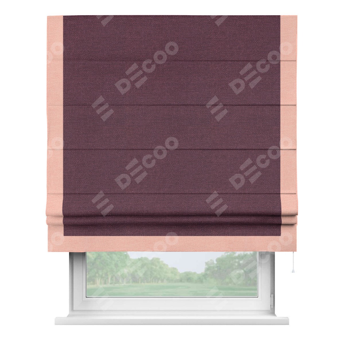 Римская штора производителя «Cortin», используется для проёма, пошита из ткани лён фиолетовый, артикул 85907. Отделка шторы кантом «Виктория», ткань для канта используется из льна разной расцветки на выбор. Имеет универсальный механизм и подходит для монтажа: на потолок, на стену и в нишу.
