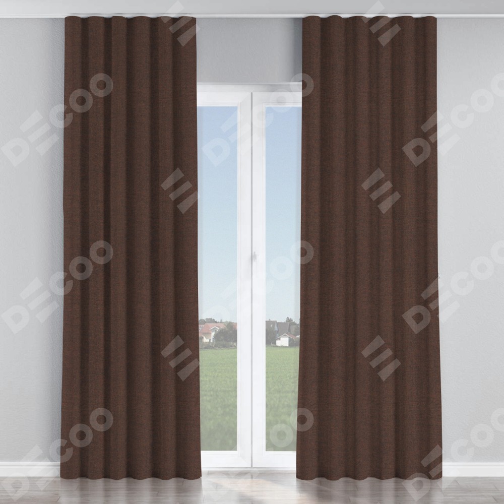 Комплект прямых штор, от производителя «Cortin», пошиты из ткани лён коричневый, артикул ткани 53443. С изнаночной стороны в верхней части штор пристрачивается шторная лента с декоративными складками «Волна». Для создания элегантных складок прямые шторы шьются по стандарту с коэффициентом 1:2 (на 100 см. ширины проёма 200 см. ширины ткани).