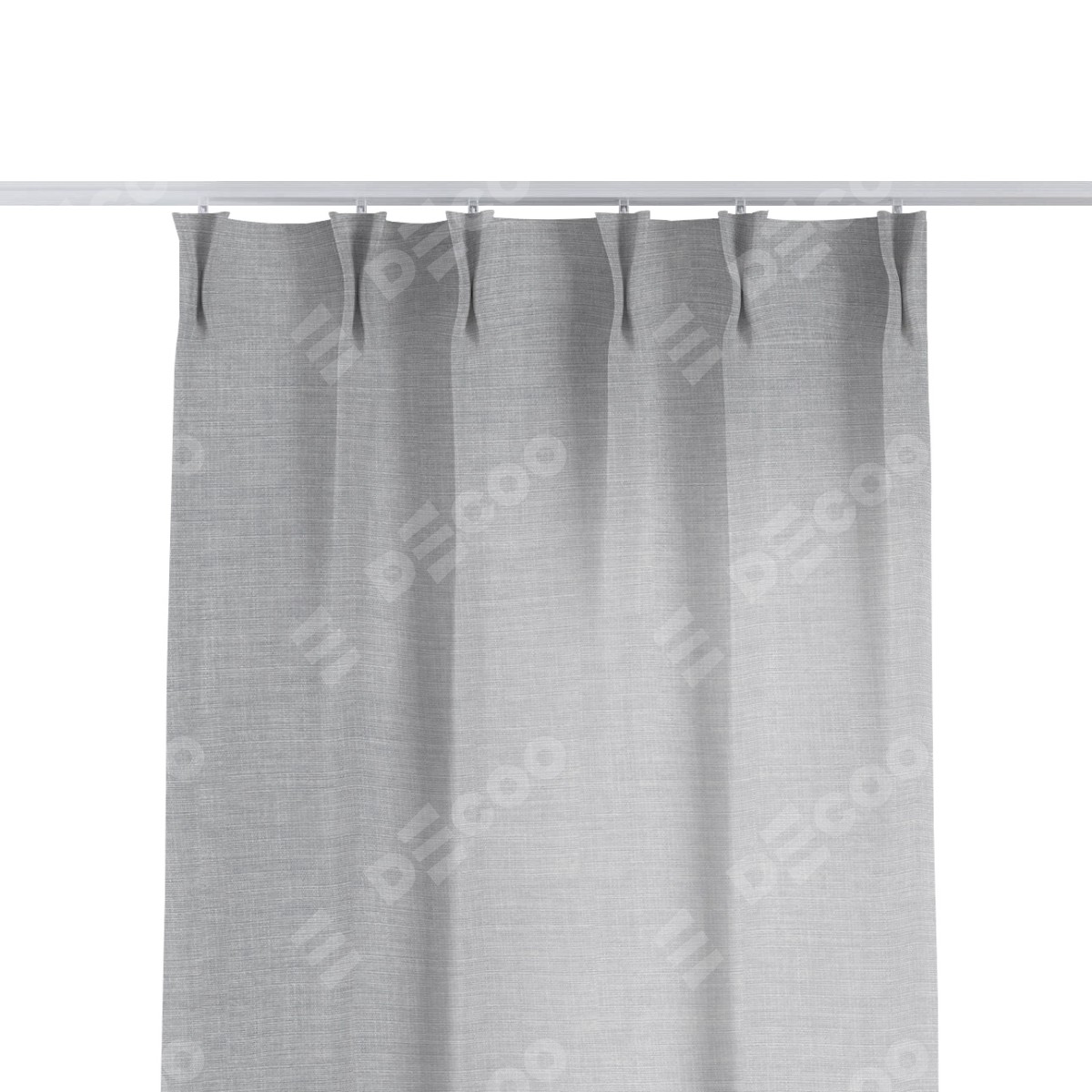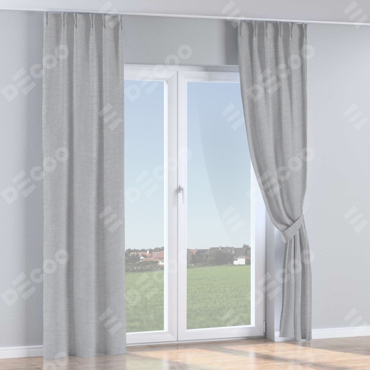 Комплект прямых штор, от производителя «Cortin», пошиты из ткани лён серый, артикул ткани 7440. С изнаночной стороны в верхней части штор пристрачивается шторная лента с декоративными складками «Кустик». Для создания элегантных складок прямые шторы шьются по стандарту с коэффициентом 1:2 (на 100 см. ширины проёма 200 см. ширины ткани).