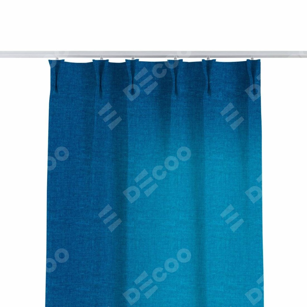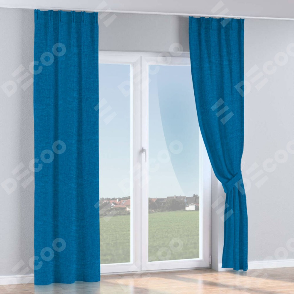 Комплект прямых штор, от производителя «Cortin», пошиты из ткани лён синий, артикул ткани 63742. С изнаночной стороны в верхней части штор пристрачивается шторная лента с декоративными складками «Кустик». Для создания элегантных складок прямые шторы шьются по стандарту с коэффициентом 1:2 (на 100 см. ширины проёма 200 см. ширины ткани).