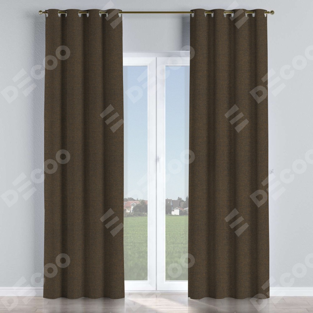Комплект прямых штор, от производителя «Cortin», пошиты из ткани лён тёмно-коричневый, артикул ткани 53444. Данная модель пошита на люверсах, комплектуется на выбор круглым карнизом и подходит для монтажа на стену или потолок. Прямые шторы на люверсах шьются по стандарту с коэффициентом 1/2 (на 100 см. ширины проёма 200 см. ширины ткани), отличительным преимуществом данной модели является простой способ монтажа. Достаточно повесить ее на трубу и штора готова!