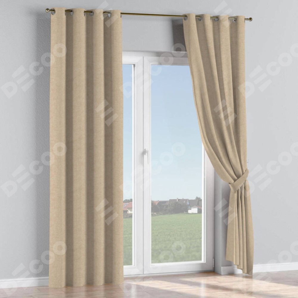 Комплект прямых штор, от производителя «Cortin», пошиты из ткани лён кашемир бежевый, артикул ткани 17206. Данная модель пошита на люверсах, комплектуется на выбор круглым карнизом и подходит для монтажа на стену или потолок. Прямые шторы на люверсах шьются по стандарту с коэффициентом 1/2 (на 100 см. ширины проёма 200 см. ширины ткани), отличительным преимуществом данной модели является простой способ монтажа. Достаточно повесить ее на трубу и штора готова!