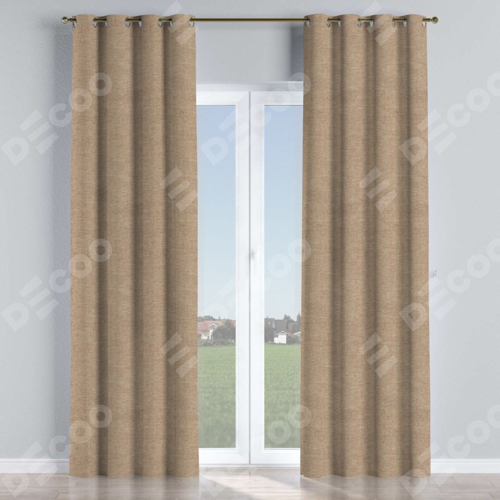 Комплект прямых штор, от производителя «Cortin», пошиты из ткани лён кашемир коричневый, артикул ткани 21614. Данная модель пошита на люверсах, комплектуется на выбор круглым карнизом и подходит для монтажа на стену или потолок. Прямые шторы на люверсах шьются по стандарту с коэффициентом 1/2 (на 100 см. ширины проёма 200 см. ширины ткани), отличительным преимуществом данной модели является простой способ монтажа. Достаточно повесить ее на трубу и штора готова!