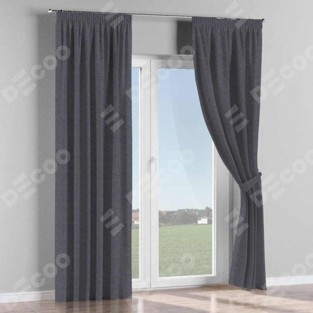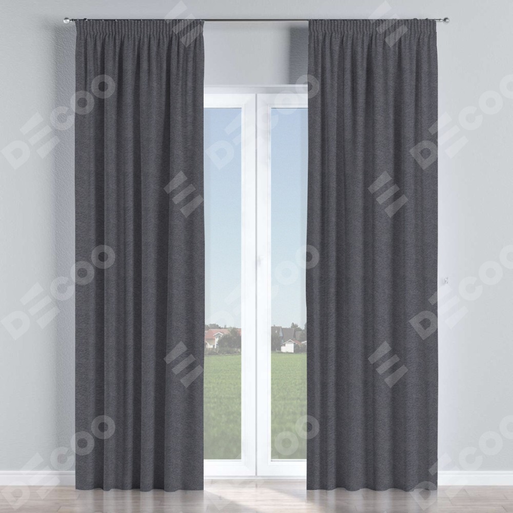 Комплект прямых штор, от производителя «Cortin», пошиты из ткани софт однотонный графит, артикул ткани 19316. С изнаночной стороны в верхней части штор пристрачивается шторная лента с декоративными складками «Карандаш». Для создания элегантных складок прямые шторы шьются по стандарту с коэффициентом 1:2 (на 100 см. ширины проёма 200 см. ширины ткани).