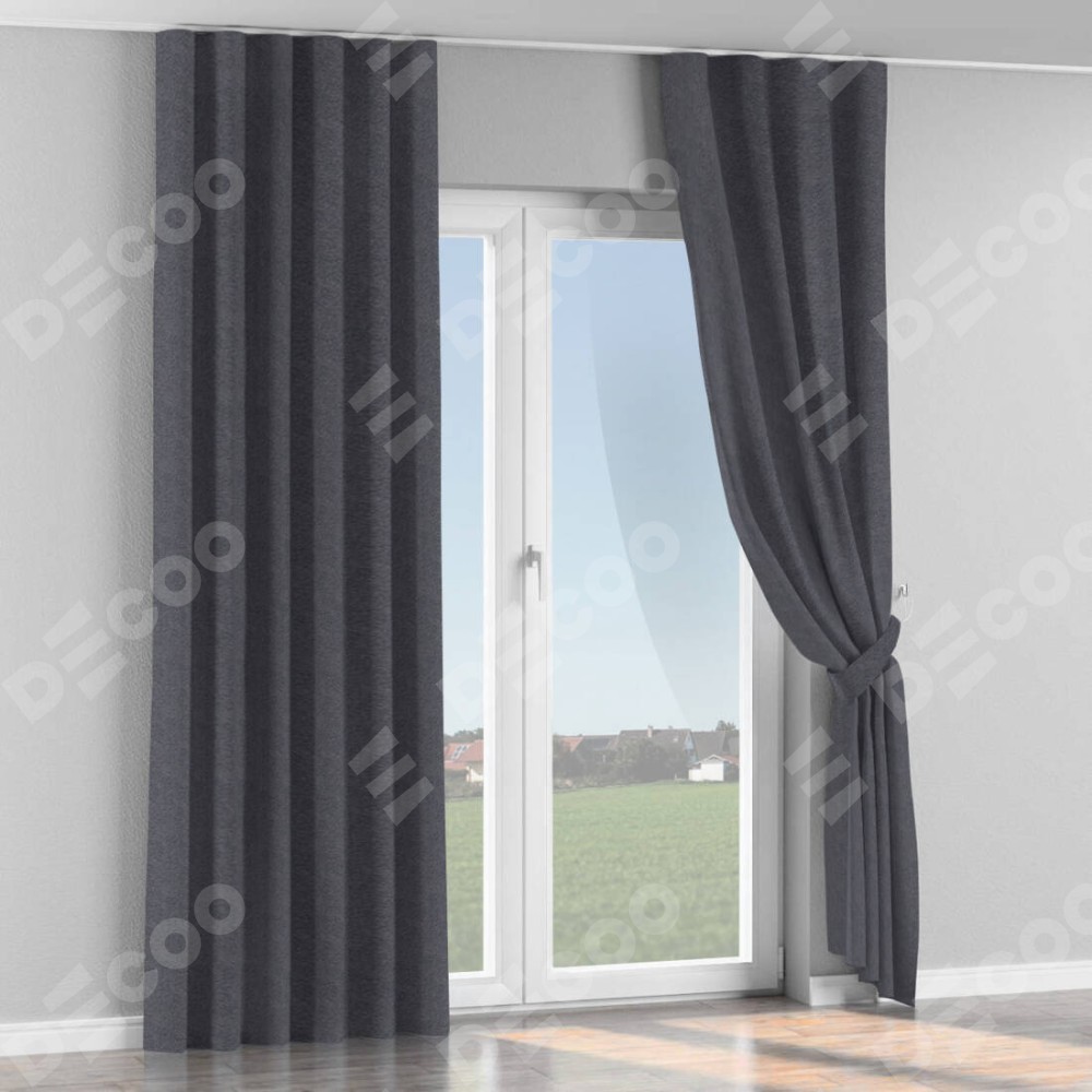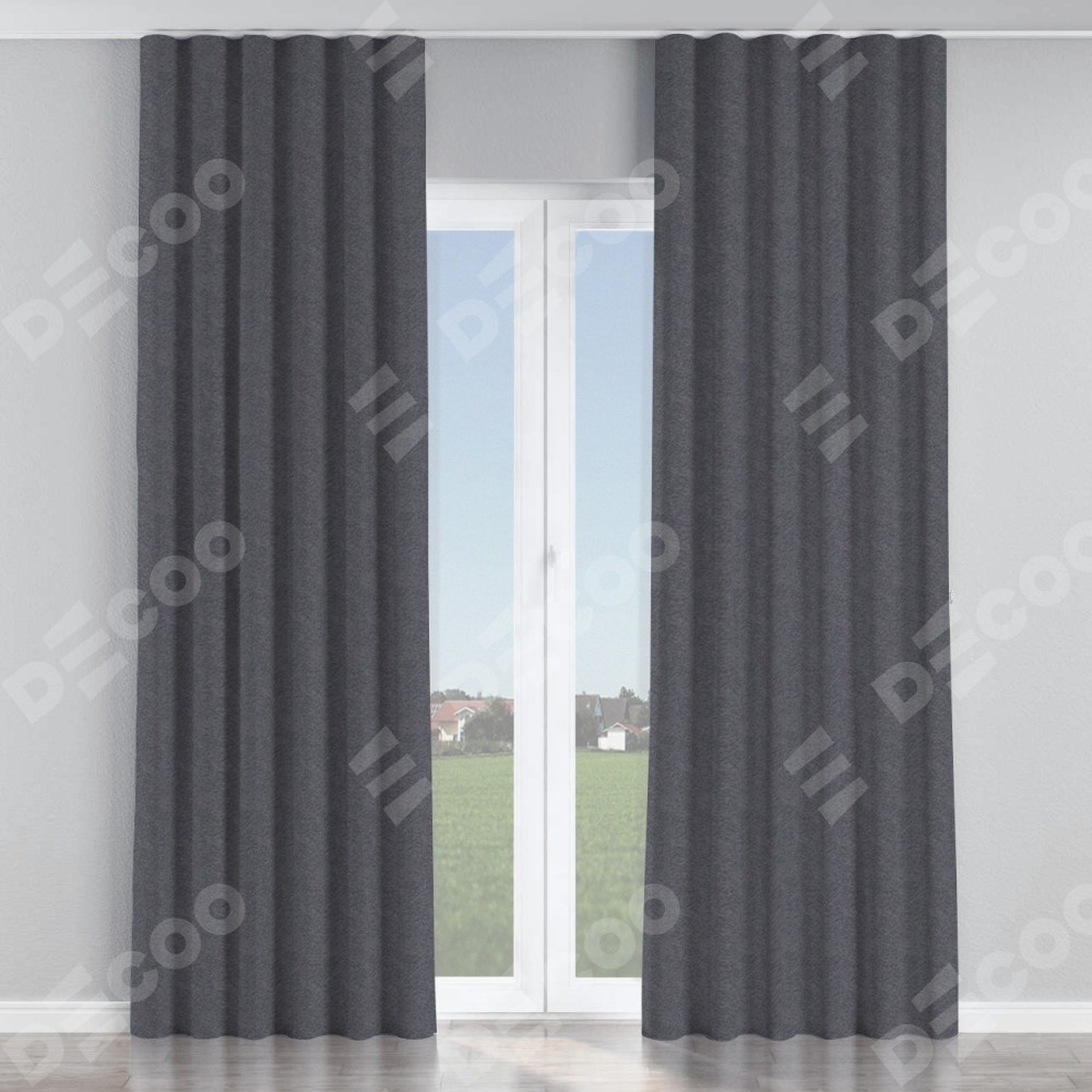 Комплект прямых штор, от производителя «Cortin», пошиты из ткани софт однотонный графит, артикул ткани 19316. С изнаночной стороны в верхней части штор пристрачивается шторная лента с декоративными складками «Волна». Для создания элегантных складок прямые шторы шьются по стандарту с коэффициентом 1:2 (на 100 см. ширины проёма 200 см. ширины ткани).