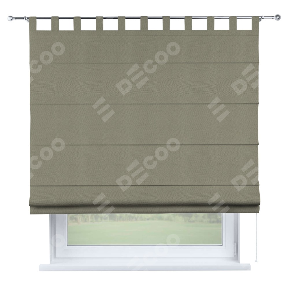Римская штора производителя «Cortin», используется для проёма, пошита из ткани блэкаут однотонный серо-зелёный, артикул ткани 29568. Данная модель пошита на петлях, комплектуется на выбор круглым карнизом и подходит для монтажа на стену. Римская штора на петлях имеет простую систему регулировки высоты, отличительным преимуществом данной модели является простой способ монтажа. Достаточно повесить ее на трубу и штора готова!