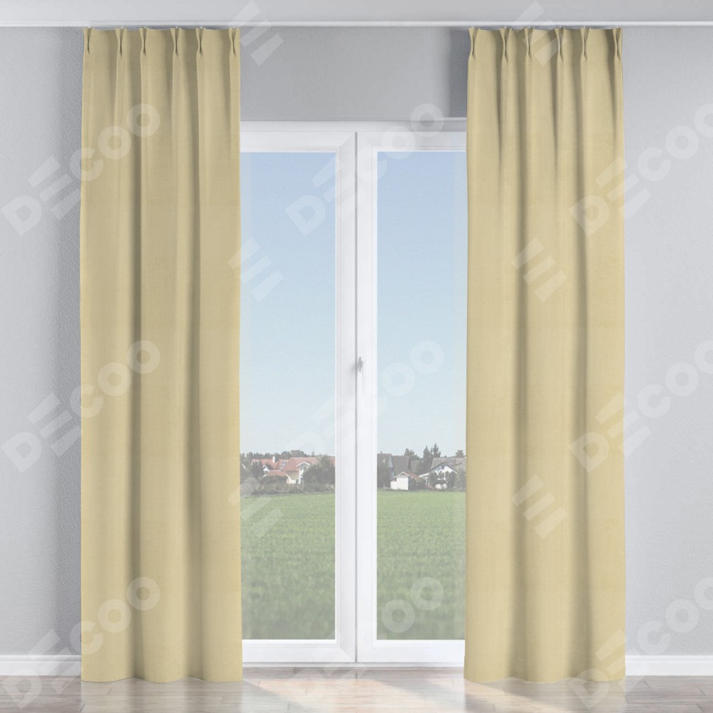 Комплект прямых штор, от производителя «Cortin», пошиты из ткани блэкаут однотонный милано латте, артикул ткани 05. С изнаночной стороны в верхней части штор пристрачивается шторная лента с декоративными складками «Кустик». Для создания элегантных складок прямые шторы шьются по стандарту с коэффициентом 1:2 (на 100 см. ширины проёма 200 см. ширины ткани).