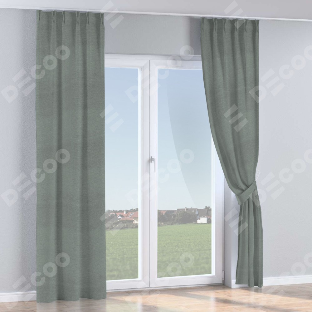 Комплект прямых штор, от производителя «Cortin», пошиты из ткани твид блэкаут серый, артикул ткани 21577. С изнаночной стороны в верхней части штор пристрачивается шторная лента с декоративными складками «Кустик». Для создания элегантных складок прямые шторы шьются по стандарту с коэффициентом 1:2 (на 100 см. ширины проёма 200 см. ширины ткани).