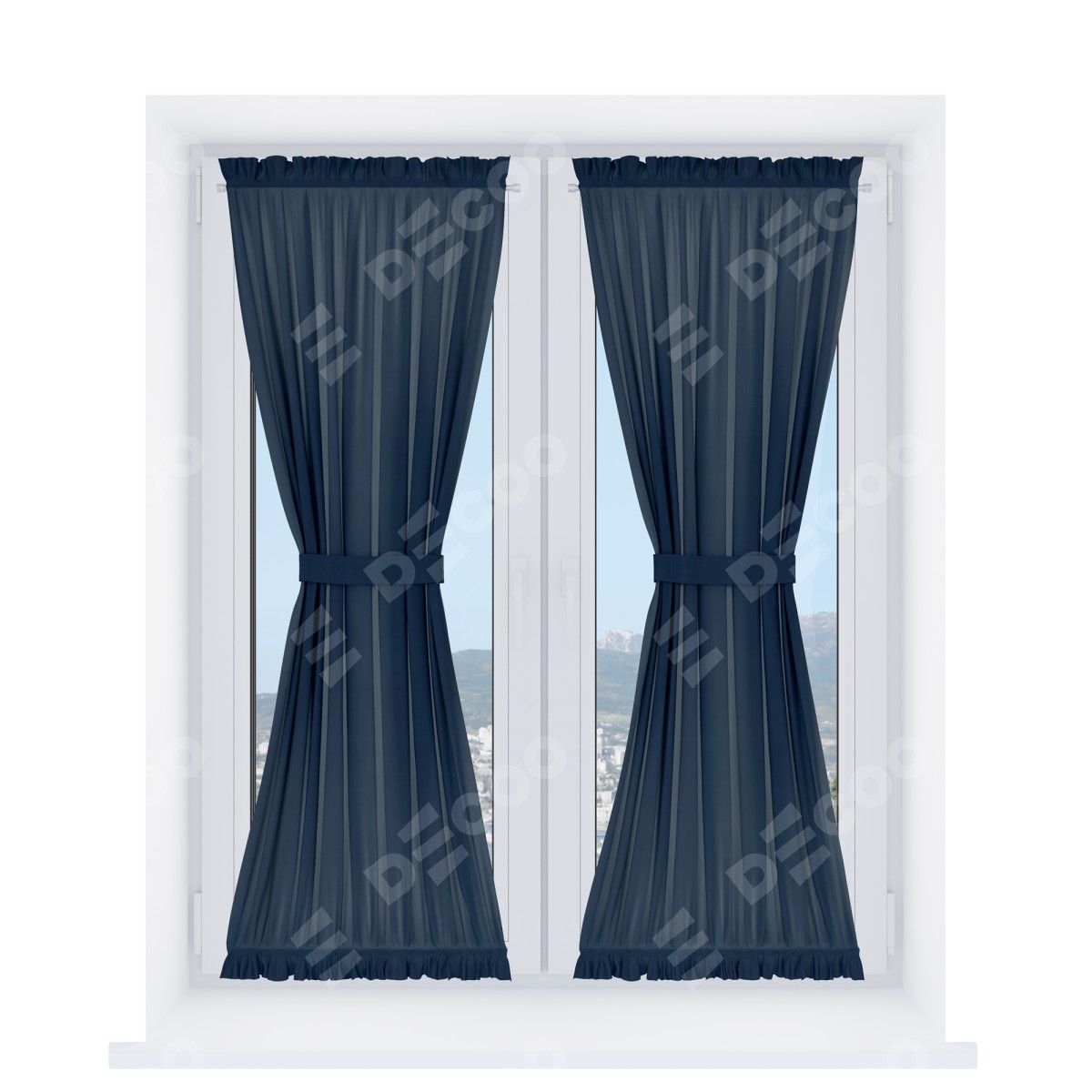 Штора «Песочные часы» производителя «Cortin», используется для створок окон и дверей, пошита из ткани блэкаут однотонный синий, артикул ткани 29327.