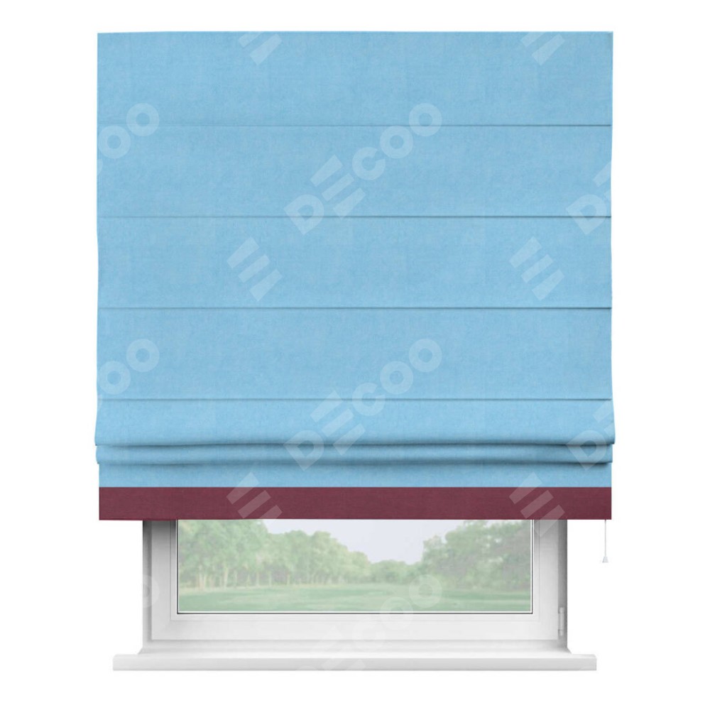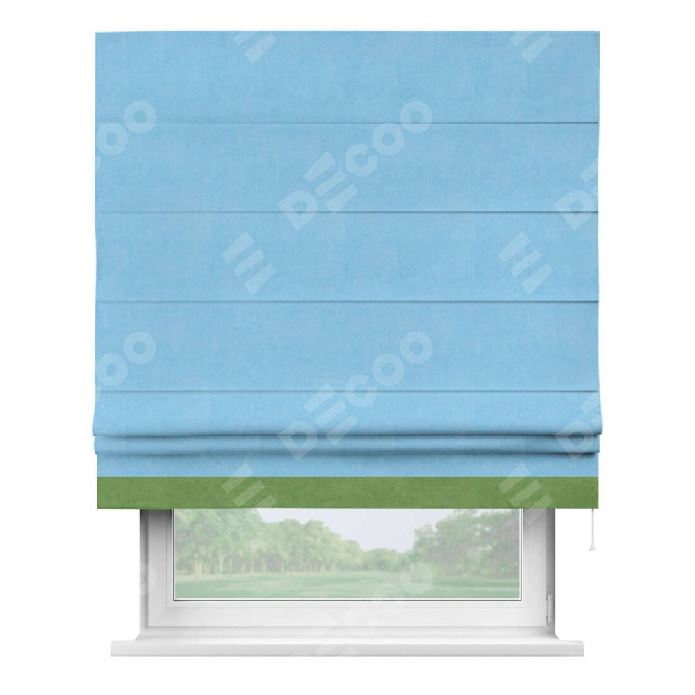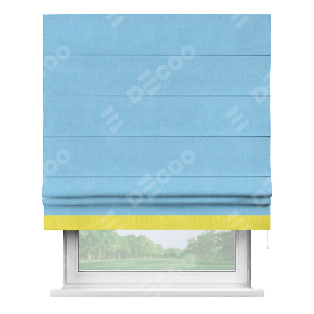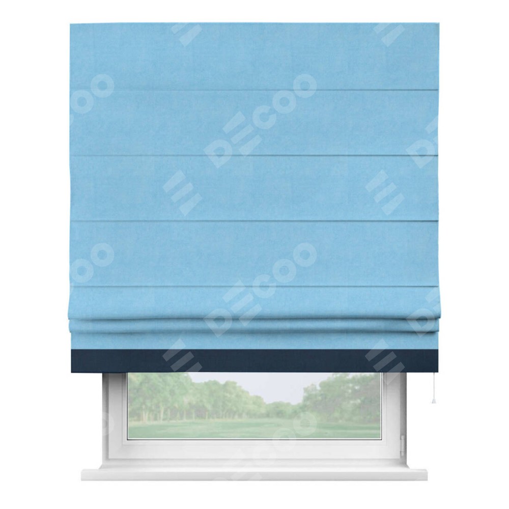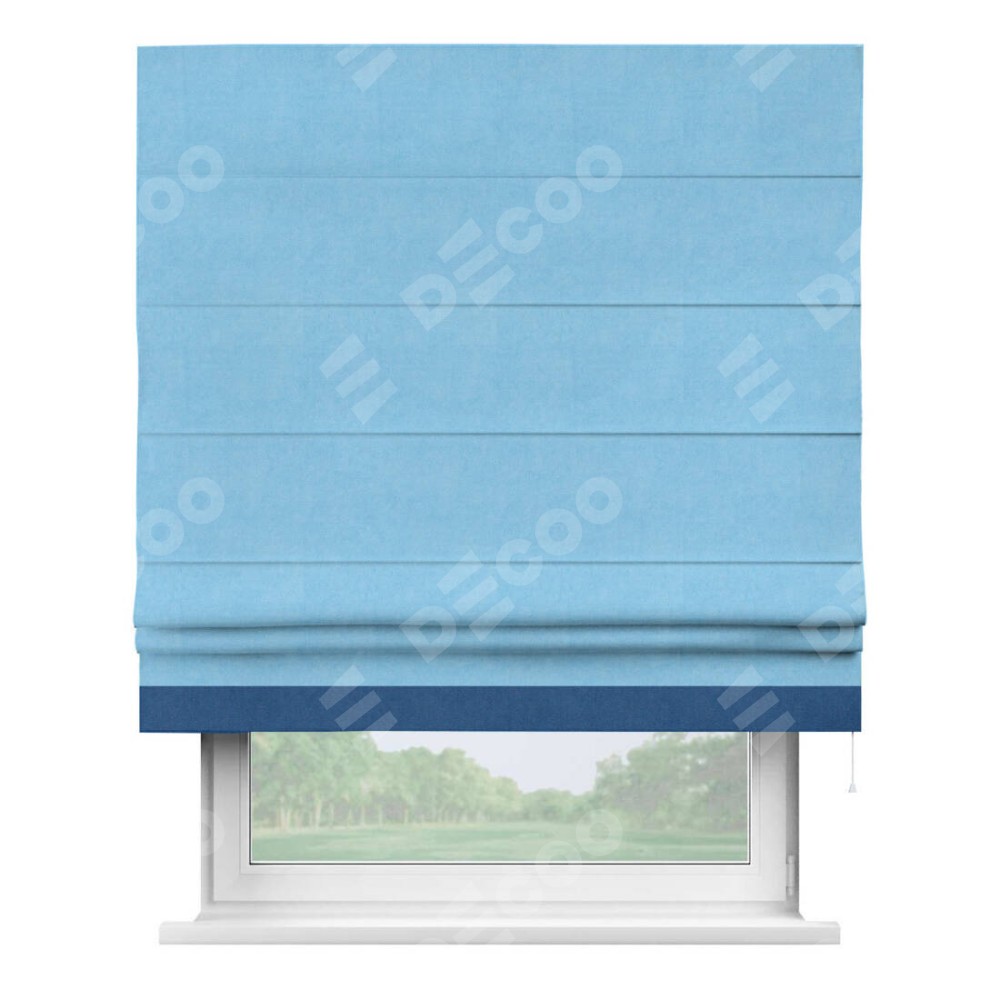 Римская штора «Кортин» с кантом Джестер, для проема, ткань вельвет голубой