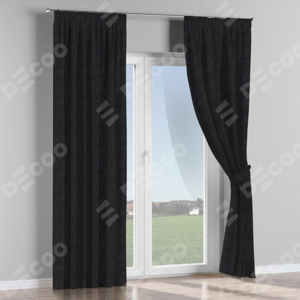 Комплект штор на тесьме «Карандаш», cotton блэкаут тёмно-серый