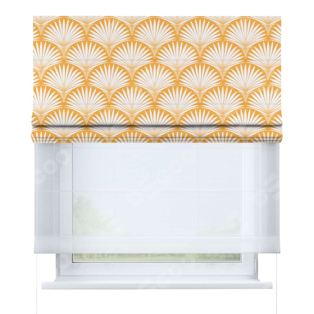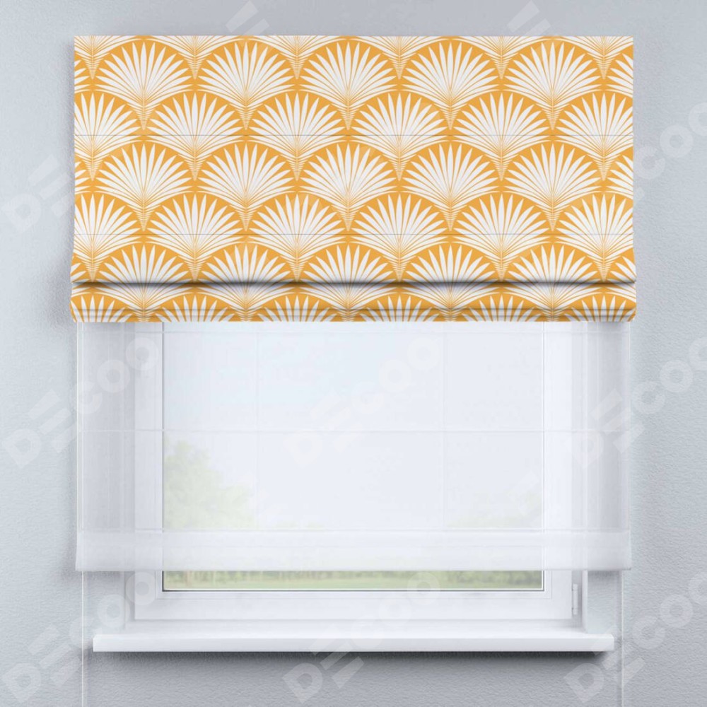 Римская штора «Кортин» день-ночь «Арт-деко листья желтый»