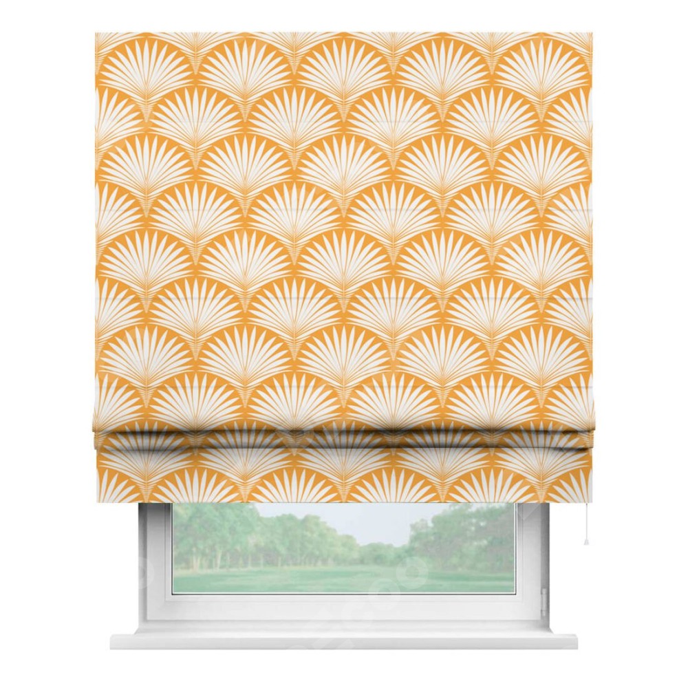 Римская штора «Кортин» для проема «Арт-деко листья желтый»