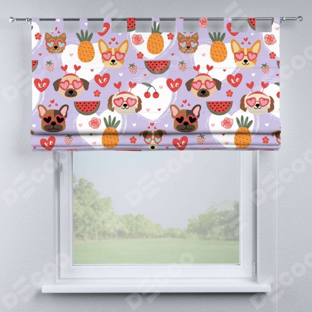 Римская штора производителя «Cortin», используется для проёма, пошита из ткани блэкаут с нанесением сублимационной печати «Забавные собачки». Данная модель пошита на петлях, комплектуется на выбор круглым карнизом и подходит для монтажа на стену. Римская штора на петлях имеет простую систему регулировки высоты, отличительным преимуществом данной модели является простой способ монтажа. Достаточно повесить ее на трубу и штора готова!