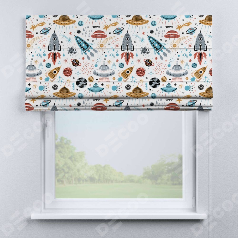 Римская штора «Кортин» для проема «Космическое приключение»