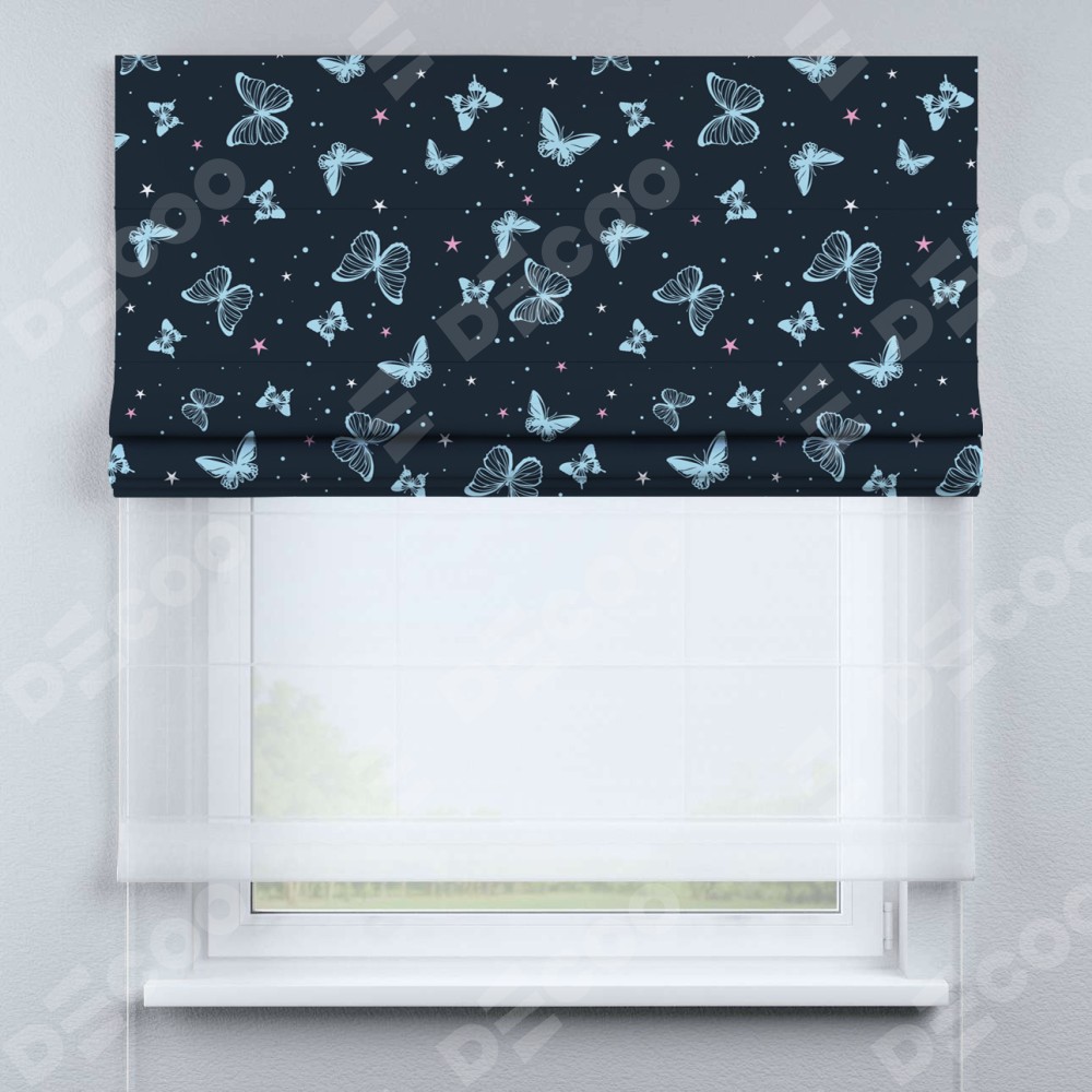 Римская штора «Кортин» день-ночь «Неоновые бабочки»