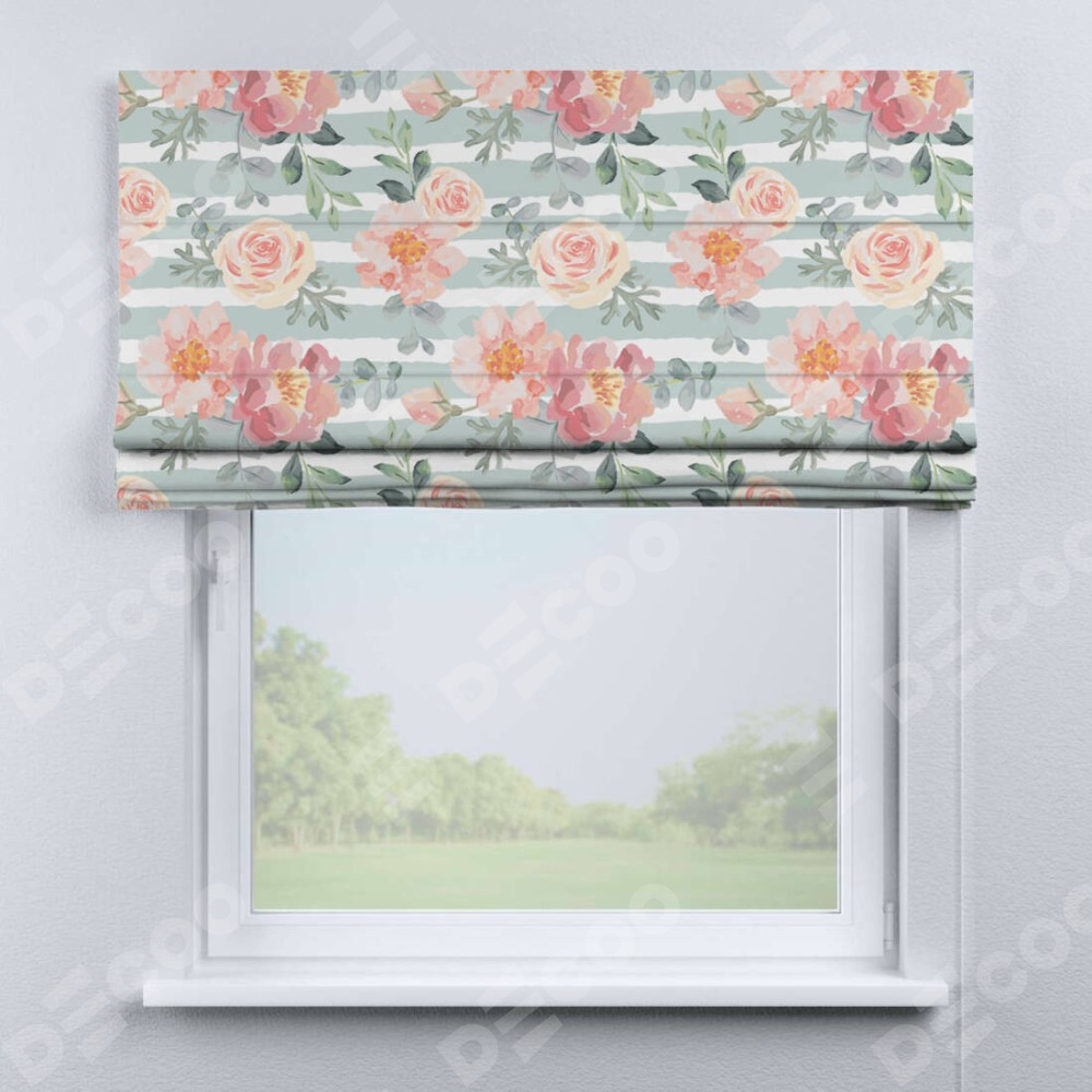 Римская штора производителя «Cortin», используется для проёма, пошита из ткани блэкаут с нанесением сублимационной печати «Розы акварель». Имеет универсальный механизм и подходит для монтажа: на потолок, на стену и в нишу.