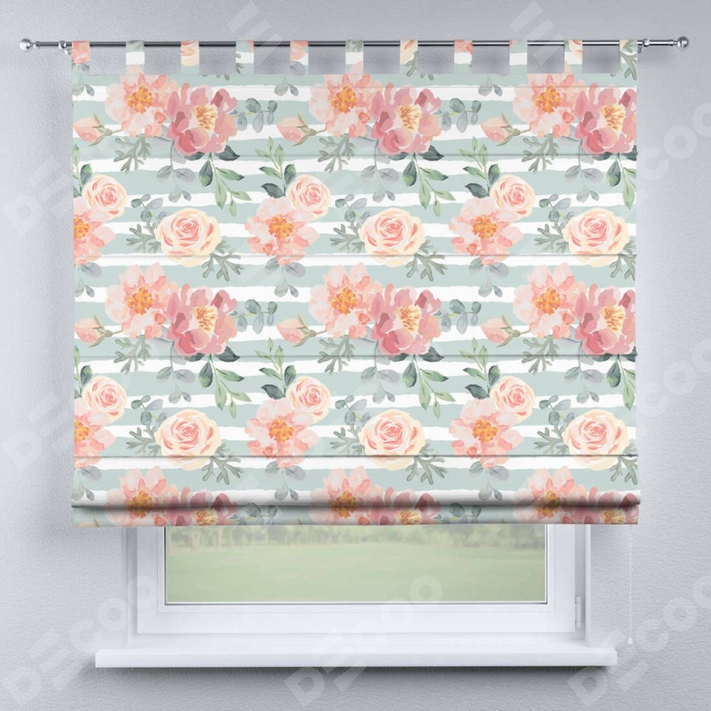 Римская штора производителя «Cortin», используется для проёма, пошита из ткани блэкаут с нанесением сублимационной печати «Розы акварель». Данная модель пошита на петлях, комплектуется на выбор круглым карнизом и подходит для монтажа на стену. Римская штора на петлях имеет простую систему регулировки высоты, отличительным преимуществом данной модели является простой способ монтажа. Достаточно повесить ее на трубу и штора готова!