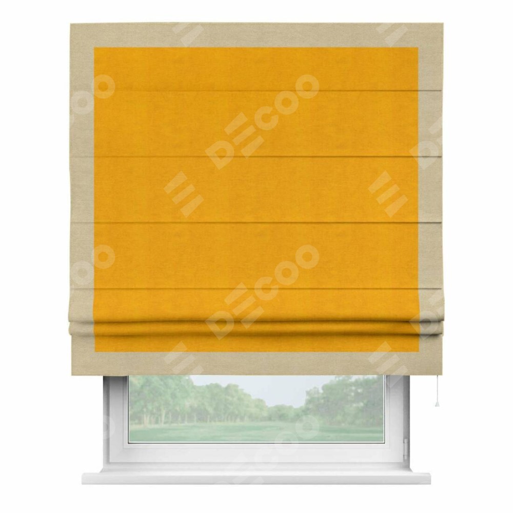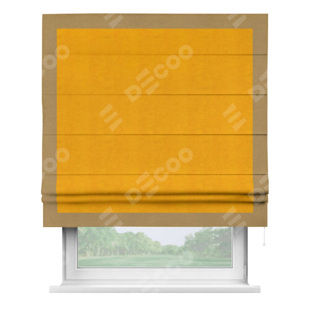 Римская штора «Кортин» с кантом Чесс, для проема, ткань вельвет желтый