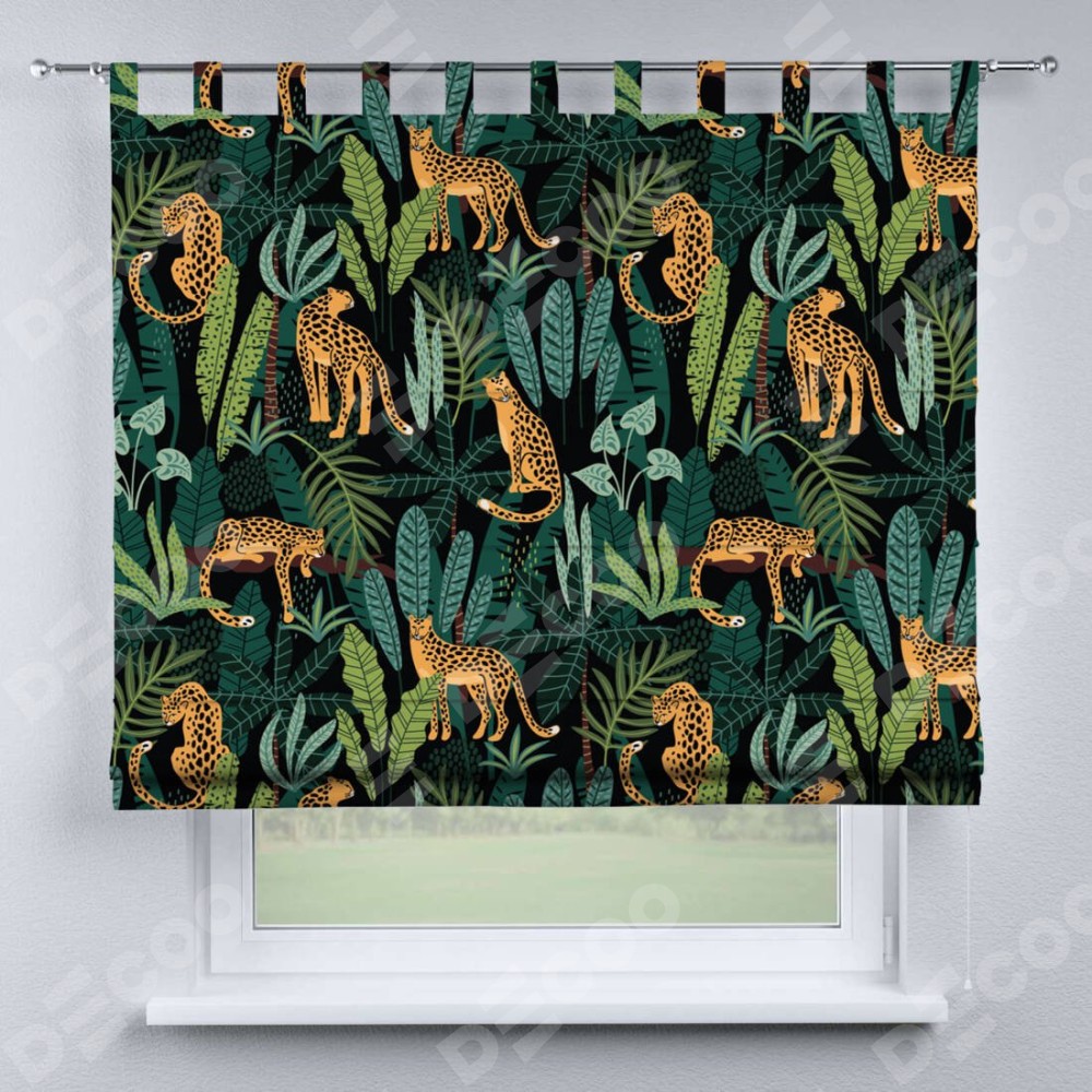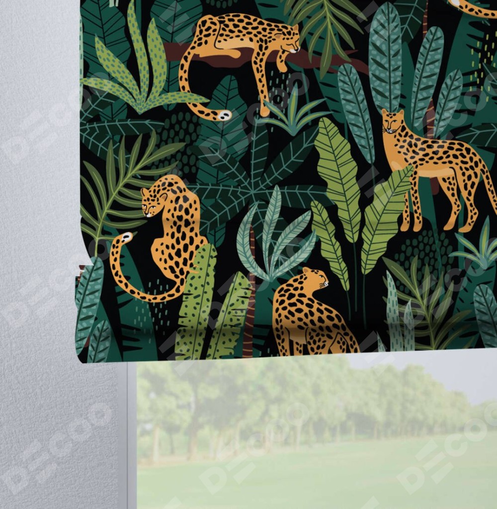 Римская штора производителя «Cortin», используется для проёма, пошита из ткани блэкаут с нанесением сублимационной печати «Леопарды в джунглях». Данная модель пошита на петлях, комплектуется на выбор круглым карнизом и подходит для монтажа на стену. Римская штора на петлях имеет простую систему регулировки высоты, отличительным преимуществом данной модели является простой способ монтажа. Достаточно повесить ее на трубу и штора готова!