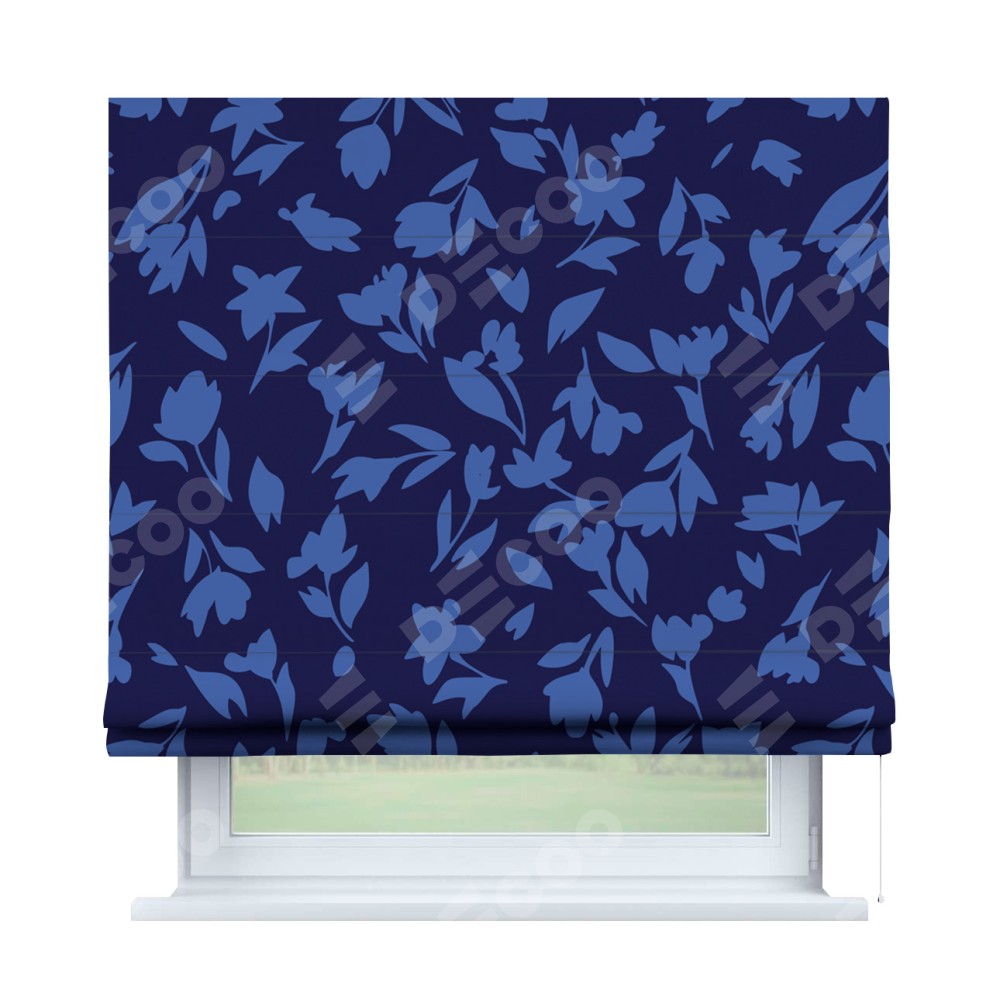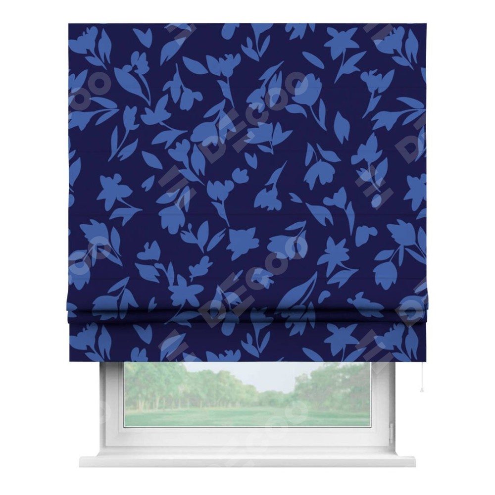Римская штора производителя «Cortin», используется для проёма, пошита из ткани блэкаут с нанесением сублимационной печати «Синие цветы». Имеет универсальный механизм и подходит для монтажа: на потолок, на стену и в нишу.