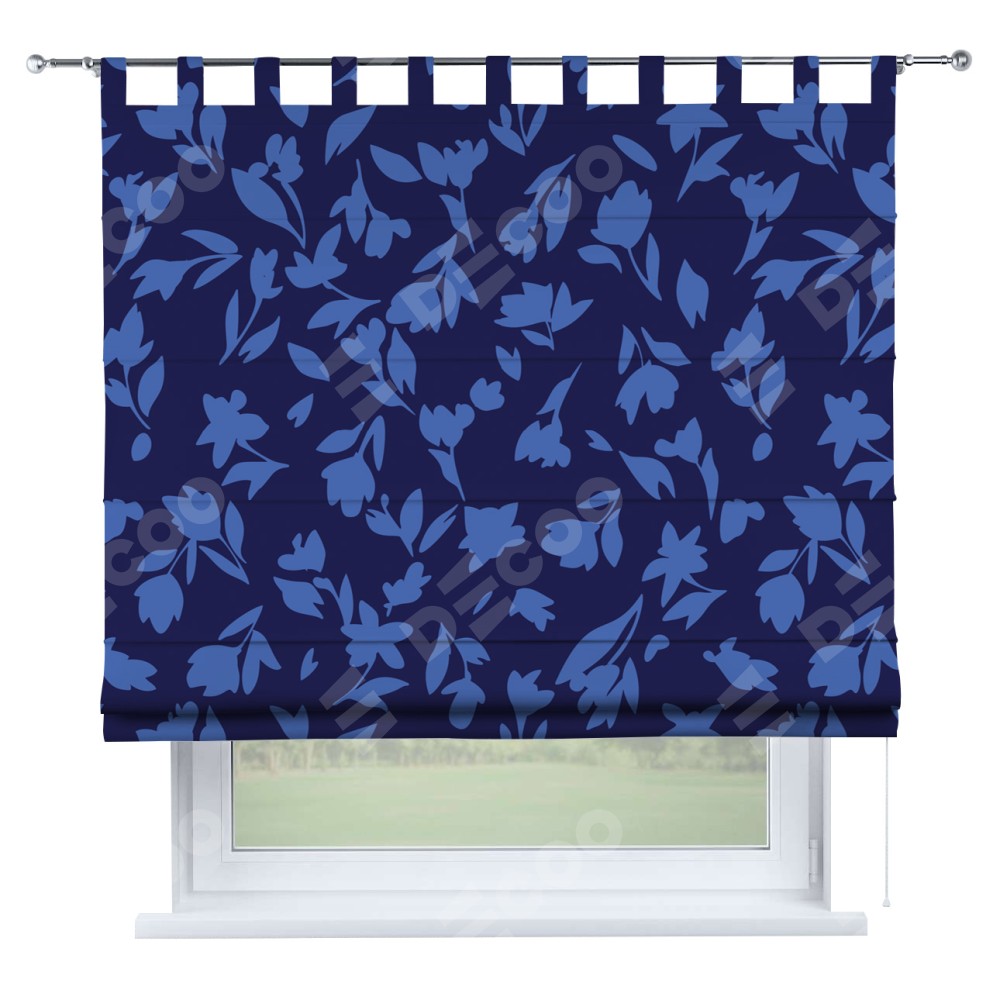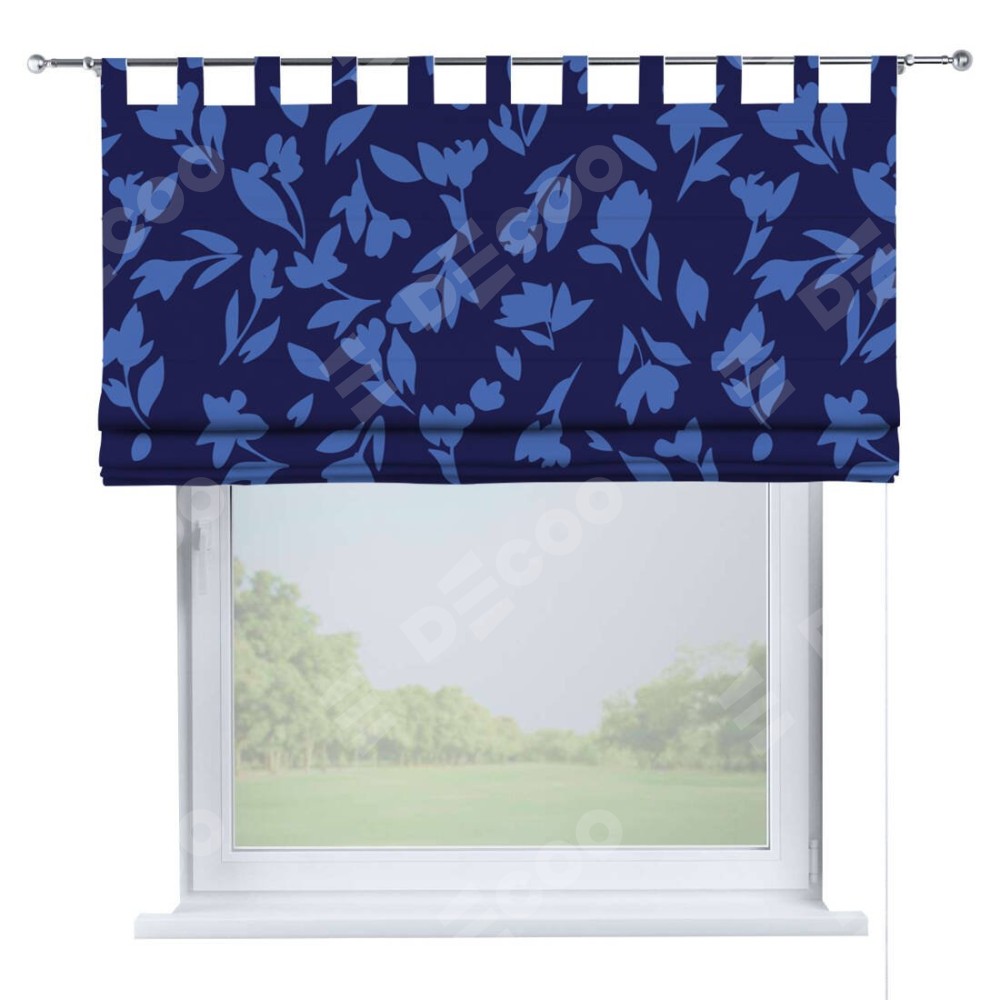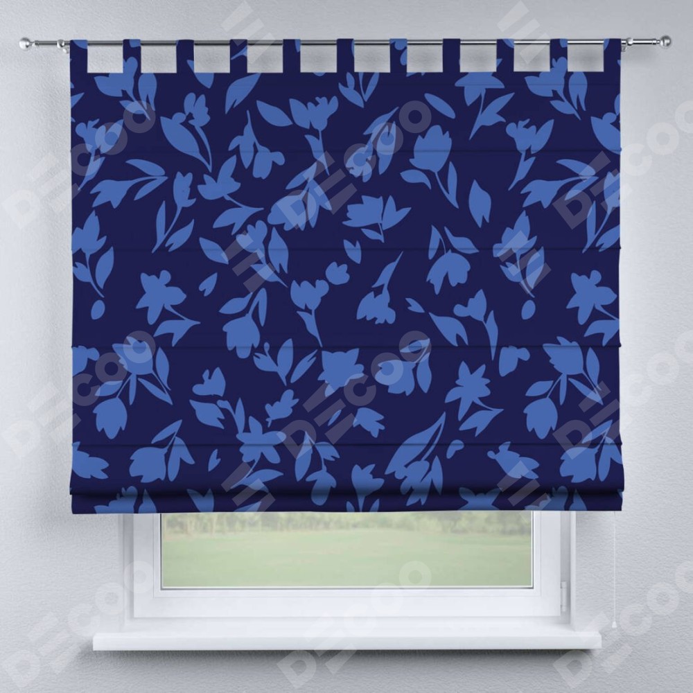 Римская штора на петлях «Синие цветы»