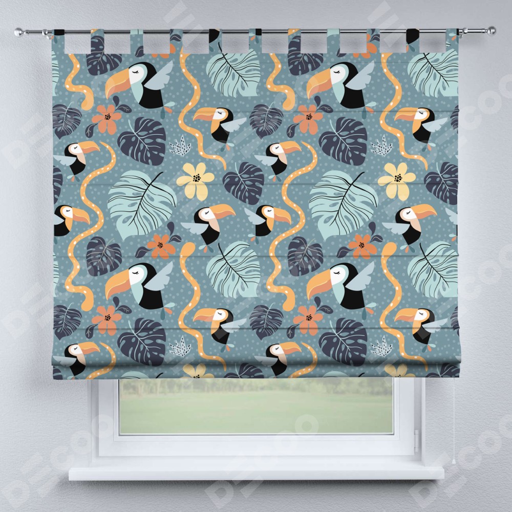 Римская штора производителя «Cortin», используется для проёма, пошита из ткани блэкаут с нанесением сублимационной печати «Экзотические птицы». Данная модель пошита на петлях, комплектуется на выбор круглым карнизом и подходит для монтажа на стену. Римская штора на петлях имеет простую систему регулировки высоты, отличительным преимуществом данной модели является простой способ монтажа. Достаточно повесить ее на трубу и штора готова!