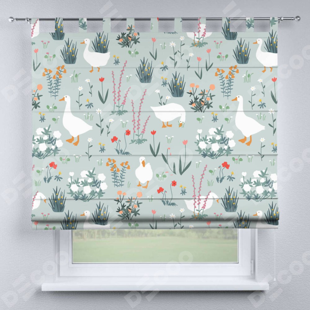 Римская штора производителя «Cortin», используется для проёма, пошита из ткани блэкаут с нанесением сублимационной печати «Гуси на лугу». Данная модель пошита на петлях, комплектуется на выбор круглым карнизом и подходит для монтажа на стену. Римская штора на петлях имеет простую систему регулировки высоты, отличительным преимуществом данной модели является простой способ монтажа. Достаточно повесить ее на трубу и штора готова!