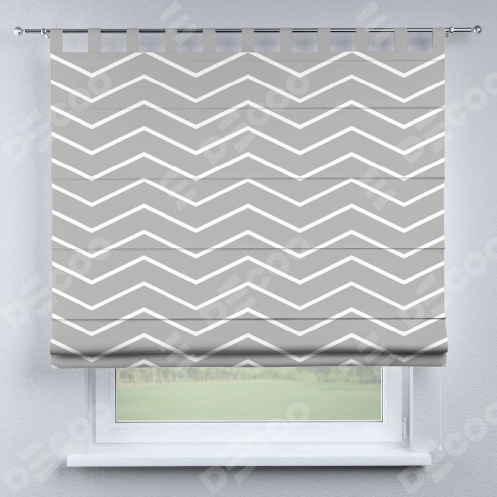 Римская штора производителя «Cortin», используется для проёма, пошита из ткани блэкаут с нанесением сублимационной печати «Серый зигзаг». Данная модель пошита на петлях, комплектуется на выбор круглым карнизом и подходит для монтажа на стену. Римская штора на петлях имеет простую систему регулировки высоты, отличительным преимуществом данной модели является простой способ монтажа. Достаточно повесить ее на трубу и штора готова!