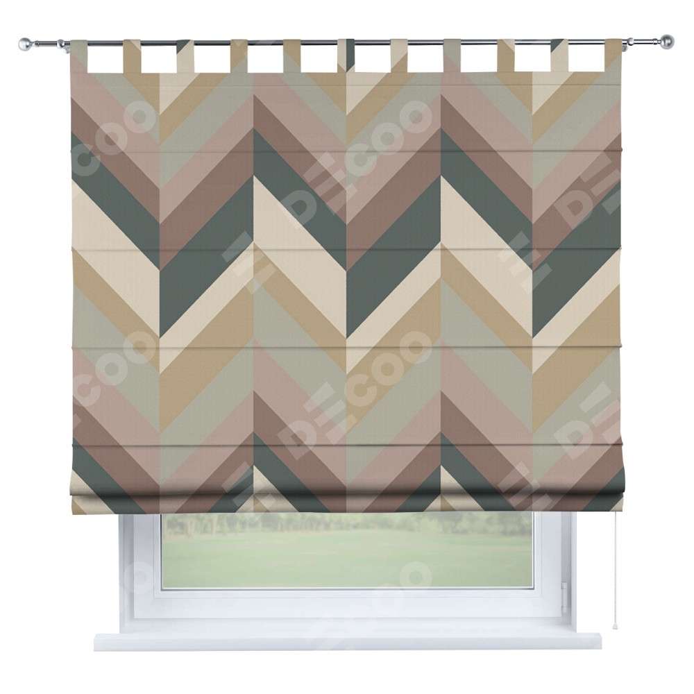 Римская штора производителя «Cortin», используется для проёма, пошита из ткани блэкаут с нанесением сублимационной печати «Шеврон Авеню». Данная модель пошита на петлях, комплектуется на выбор круглым карнизом и подходит для монтажа на стену. Римская штора на петлях имеет простую систему регулировки высоты, отличительным преимуществом данной модели является простой способ монтажа. Достаточно повесить ее на трубу и штора готова!