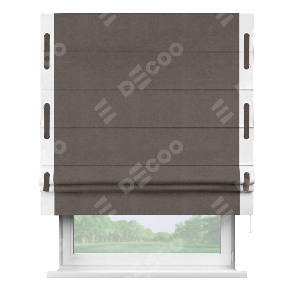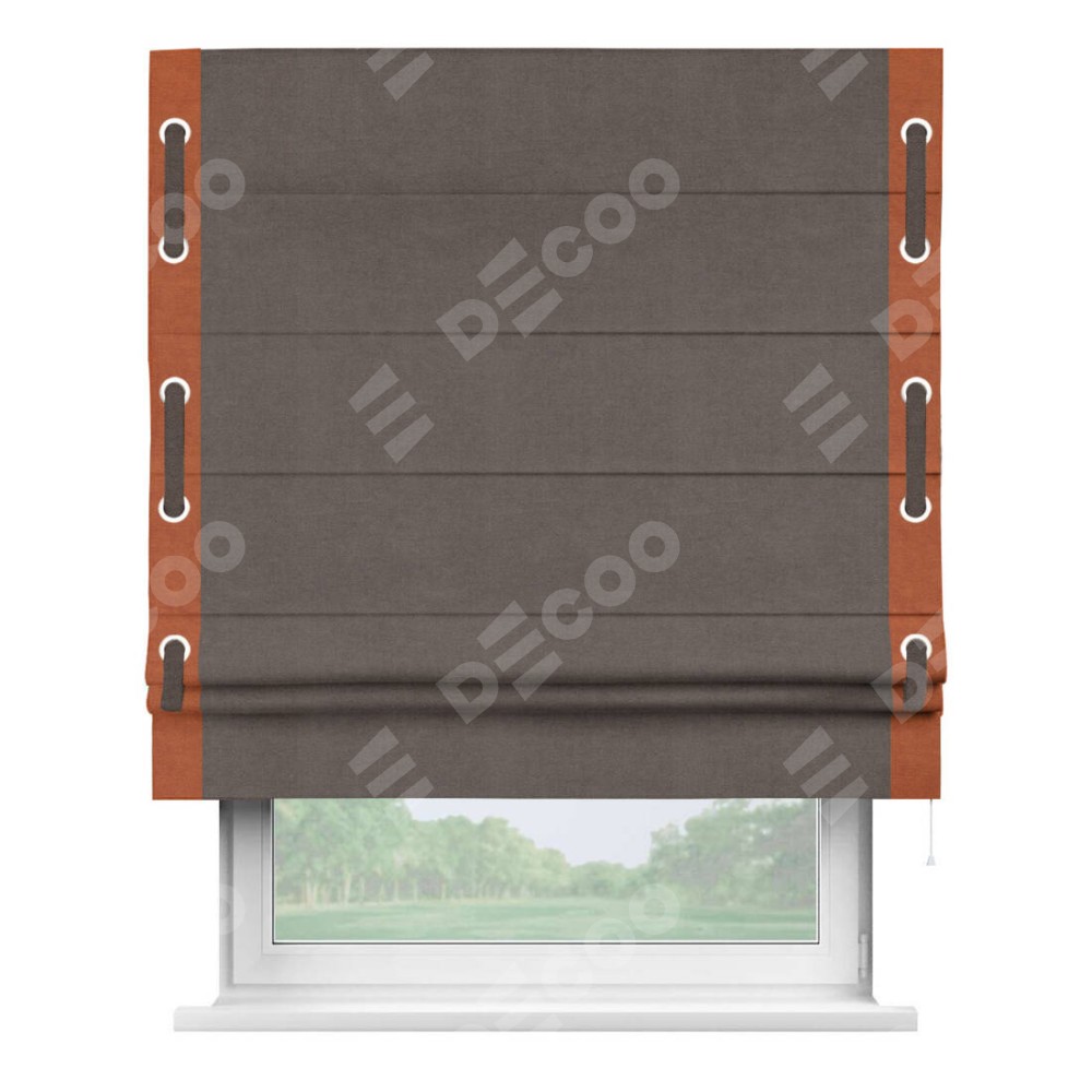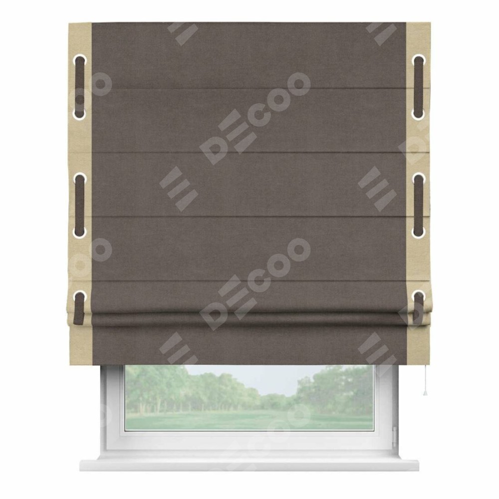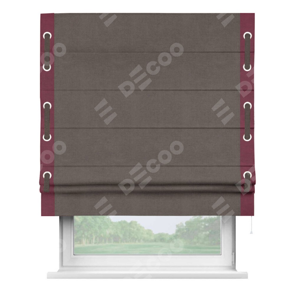 Римская штора «Кортин» с кантом Стрим Дуо (люверсы с пояском), для проема, ткань вельвет коричневый
