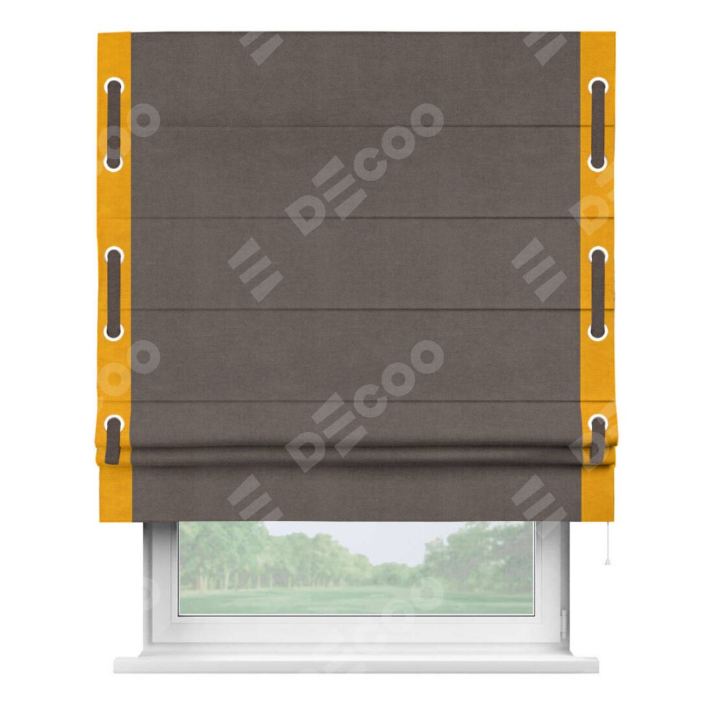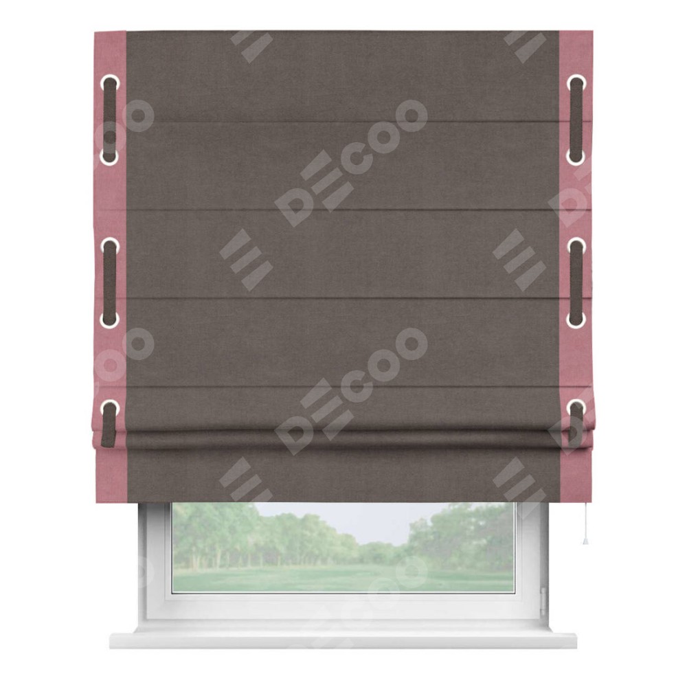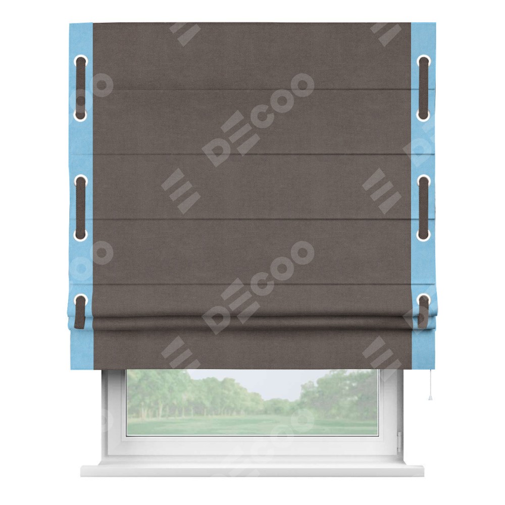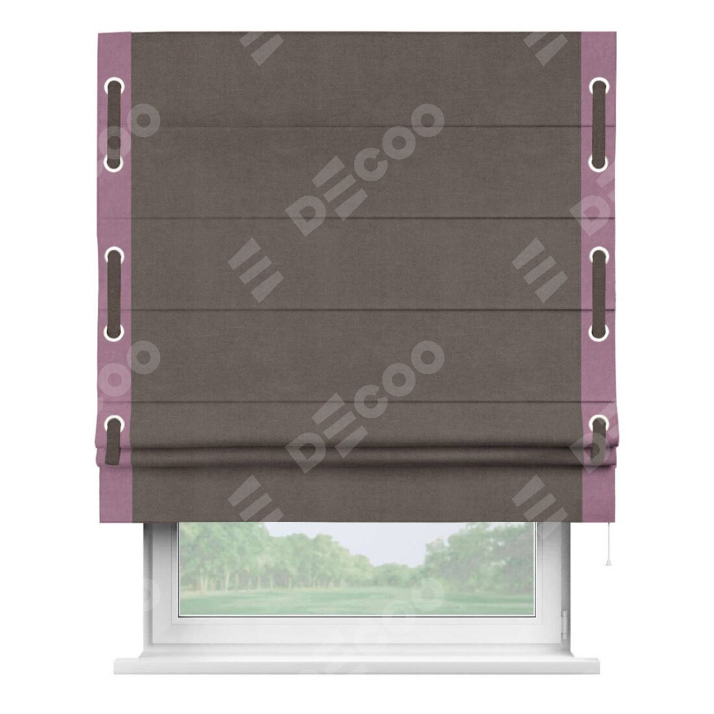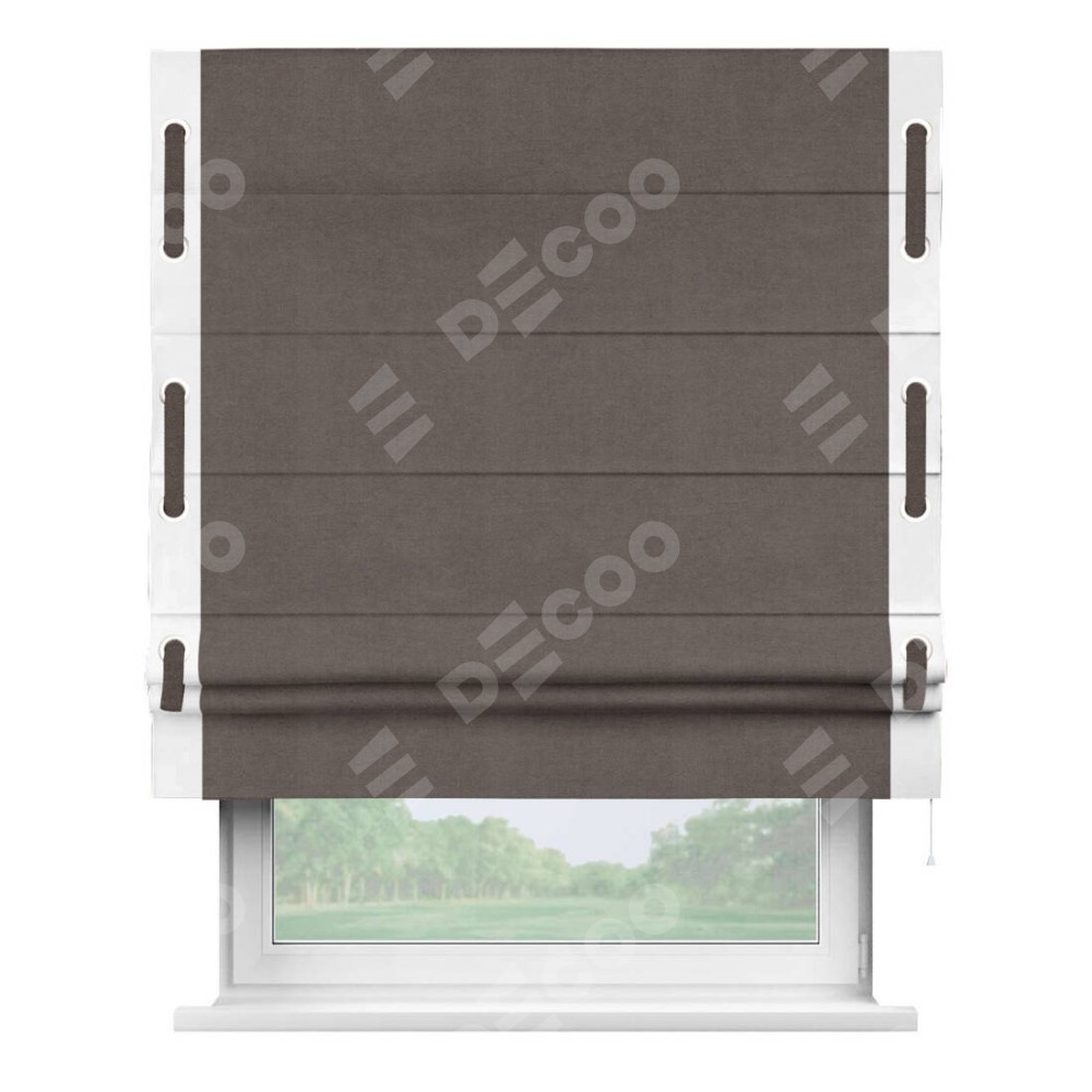 Римская штора «Кортин» с кантом Стрим Дуо (люверсы с пояском), для проема, ткань вельвет коричневый