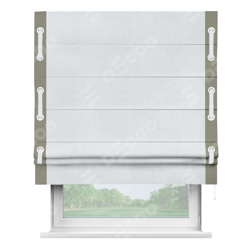 Римская штора «Кортин» с кантом Стрим Дуо (люверсы с пояском), для проема, ткань блэкаут однотонный дымчато-белый