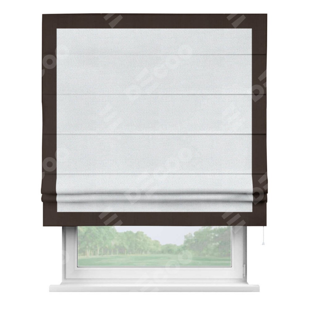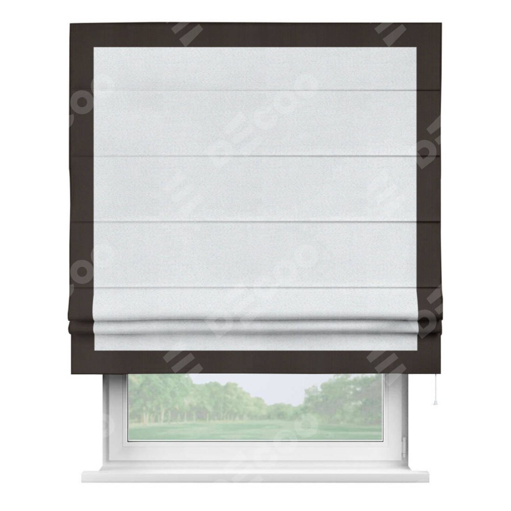 Римская штора «Кортин» с кантом Чесс, для проема, ткань блэкаут однотонный дымчато-белый