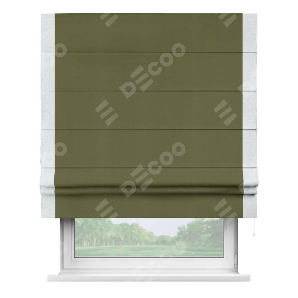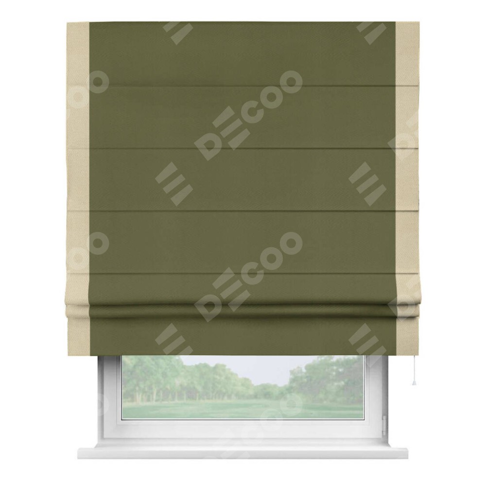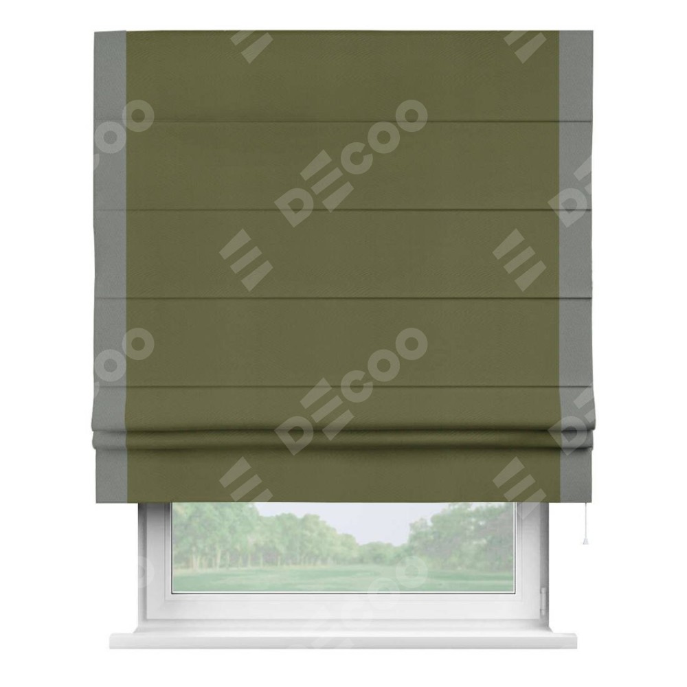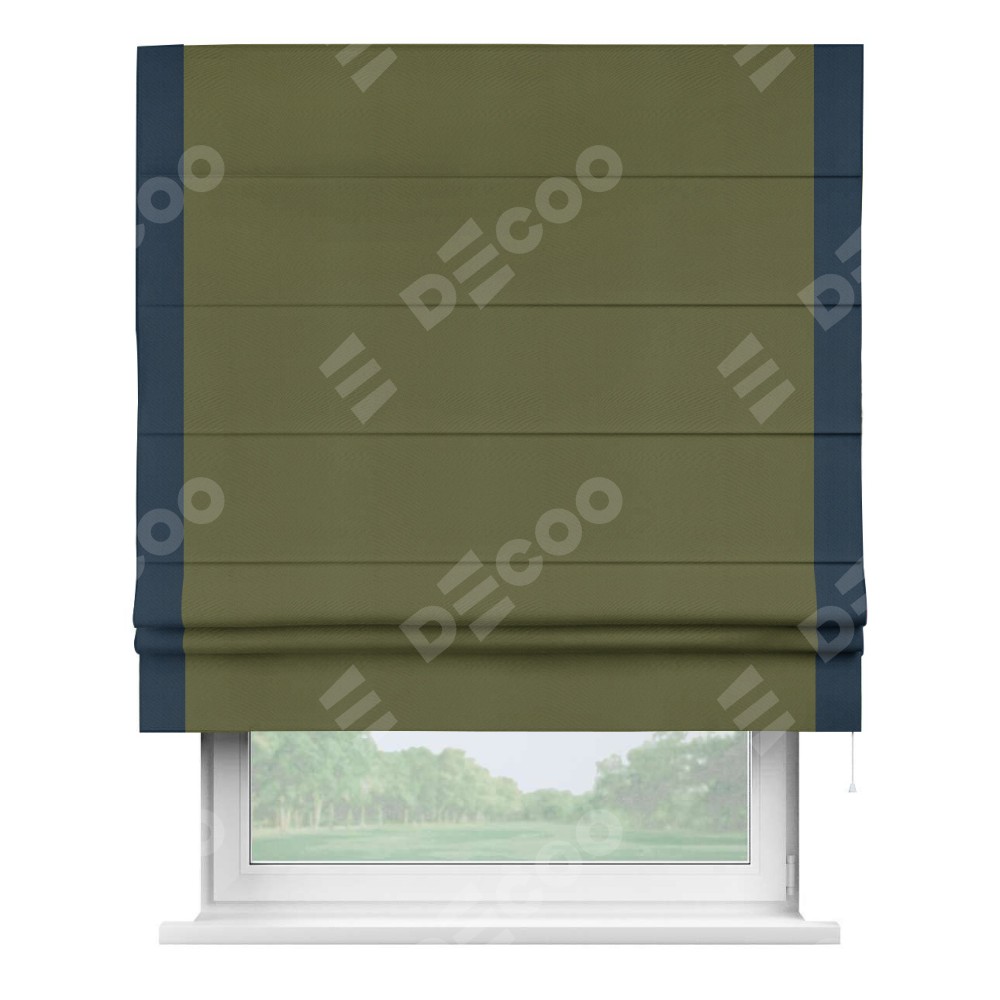 Римская штора «Кортин» с кантом Стрим Дуо, для проема, ткань блэкаут однотонный зелёный