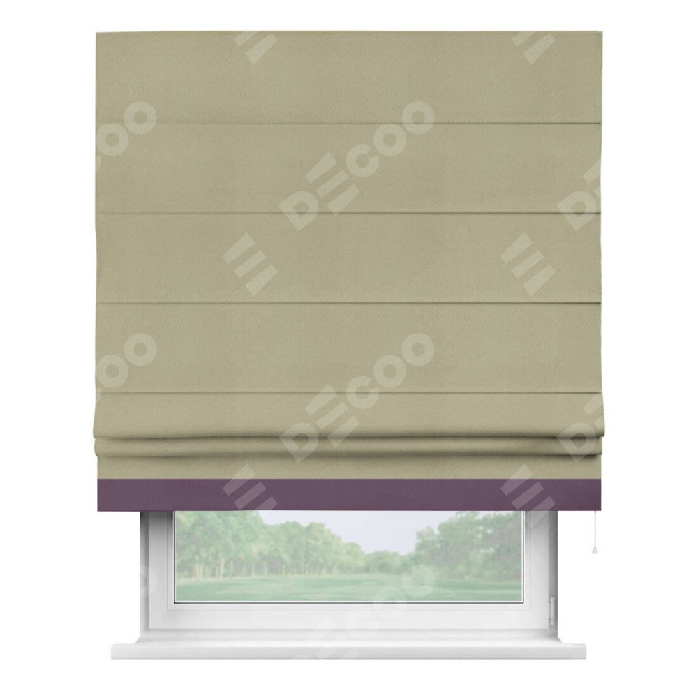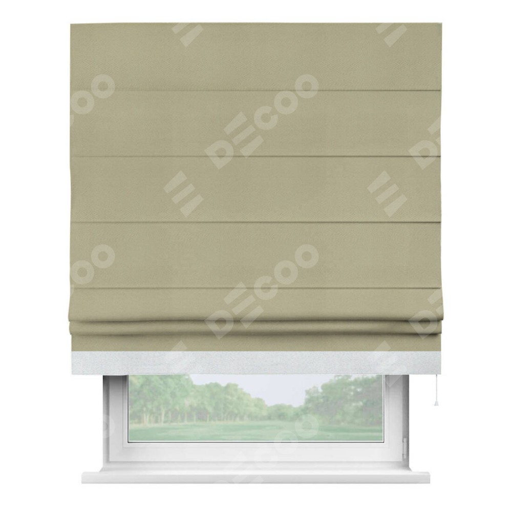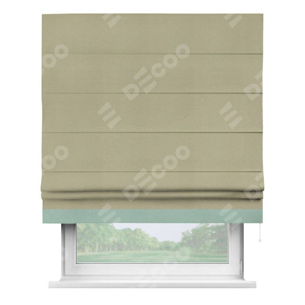 Римская штора производителя «Cortin», используется для проёма, пошита из ткани блэкаут однотонный милано капучино, артикул ткани 06. Отделка шторы кантом «Джестер», ткань для канта используется из блэкаута однотонного разной расцветки на выбор. Имеет универсальный механизм и подходит для монтажа: на потолок, на стену и в нишу.