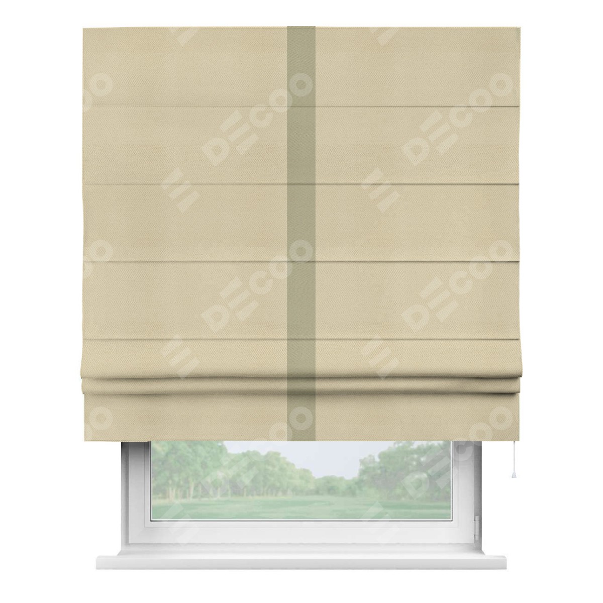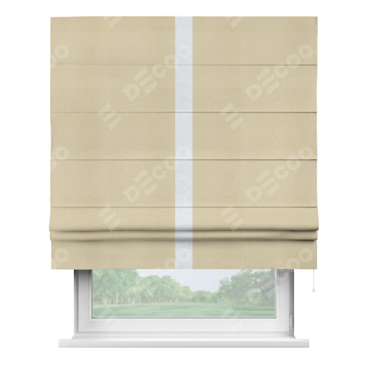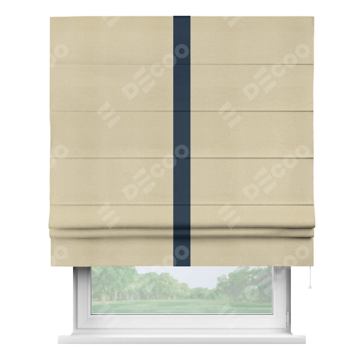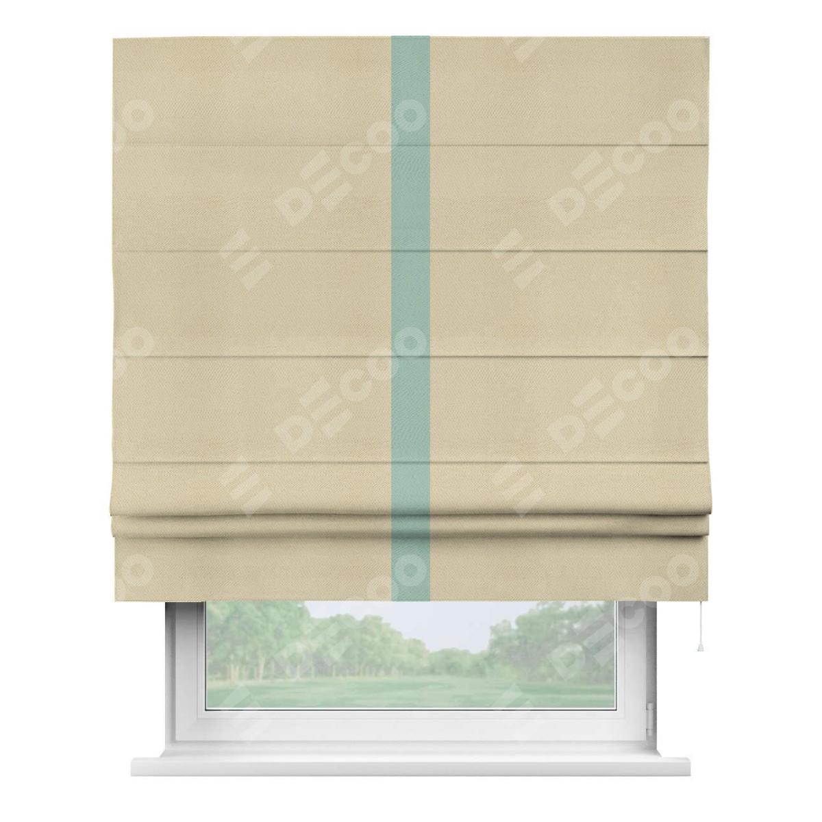 Римская штора производителя «Cortin», используется для проёма, пошита из ткани блэкаут однотонный милано латте, артикул ткани 05. Отделка шторы кантом «Хайвей», ткань для канта используется из блэкаута однотонного разной расцветки на выбор. Имеет универсальный механизм и подходит для монтажа: на потолок, на стену и в нишу.