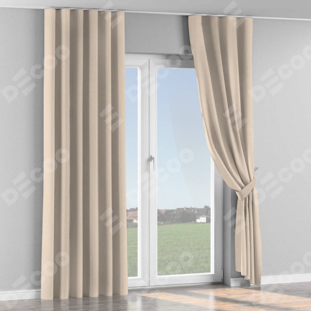 Комплект прямых штор, от производителя «Cortin», пошиты из ткани блэкаут с блеском розовая пудра, артикул ткани 34632. С изнаночной стороны в верхней части штор пристрачивается шторная лента с декоративными складками «Волна». Обратная сторона основного материала черного цвета, что обеспечивает необходимую светонепроницаемость. Для создания элегантных складок прямые шторы шьются по стандарту с коэффициентом 1:2 (на 100 см. ширины проёма 200 см. ширины ткани).