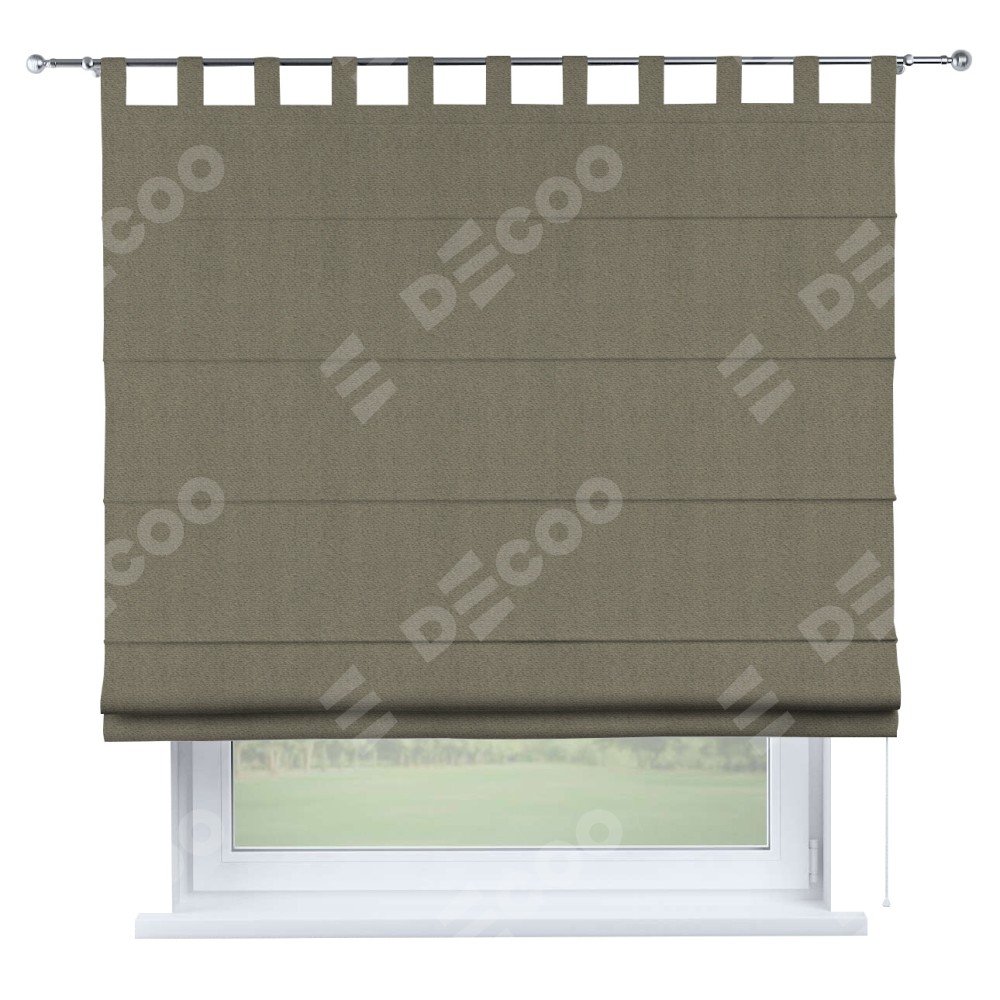Римская штора производителя «Cortin», используется для проёма, пошита из ткани блэкаут тиснение с блеском графитовый, артикул ткани 34648. Изнаночная сторона материала черного цвета, что обеспечивает необходимую светонепроницаемость. Данная модель пошита на петлях, комплектуется на выбор круглым карнизом и подходит для монтажа на стену. Римская штора на петлях имеет простую систему регулировки высоты, отличительным преимуществом данной модели является простой способ монтажа. Достаточно повесить ее на трубу и штора готова!