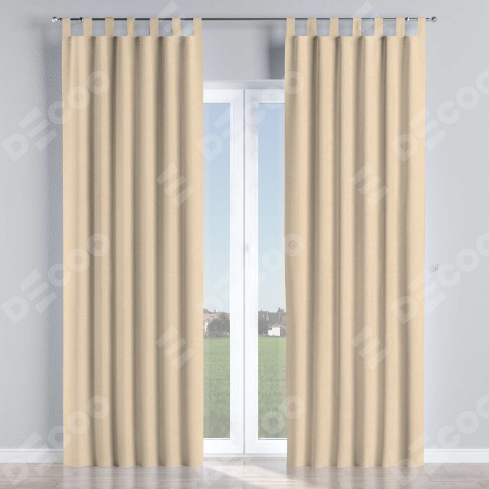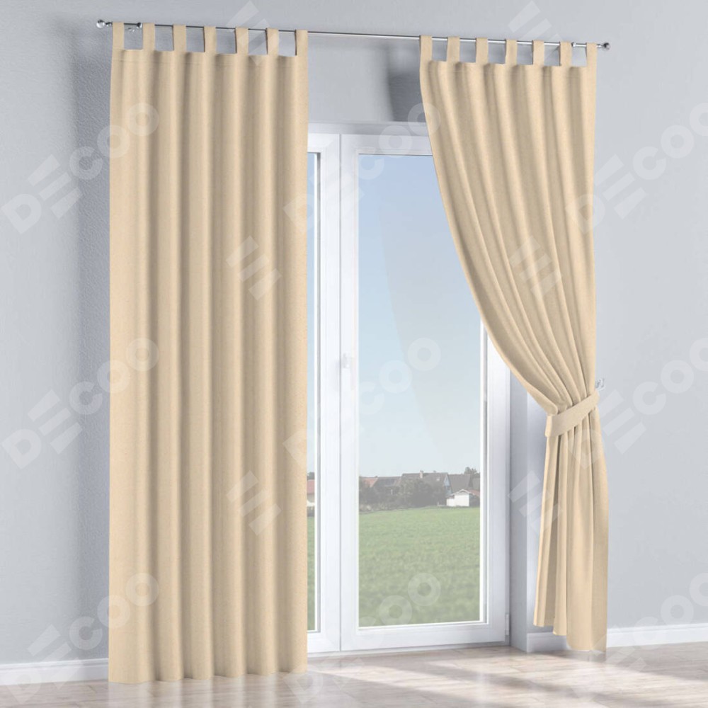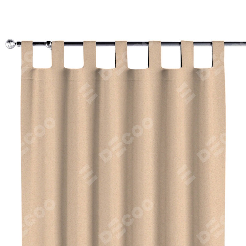 Комплект прямых штор, от производителя «Cortin», пошиты из ткани блэкаут с блеском бежевый, артикул ткани 34627. Обратная сторона основного материала черного цвета, что обеспечивает необходимую светонепроницаемость. Данная модель пошита на петлях, комплектуется на выбор круглым карнизом и подходит для монтажа на стену или потолок. Прямые шторы на петлях шьются по стандарту с коэффициентом 1/2 (на 100 см. ширины проёма 200 см. ширины ткани), отличительным преимуществом данной модели является простой способ монтажа. Достаточно повесить ее на трубу и штора готова!