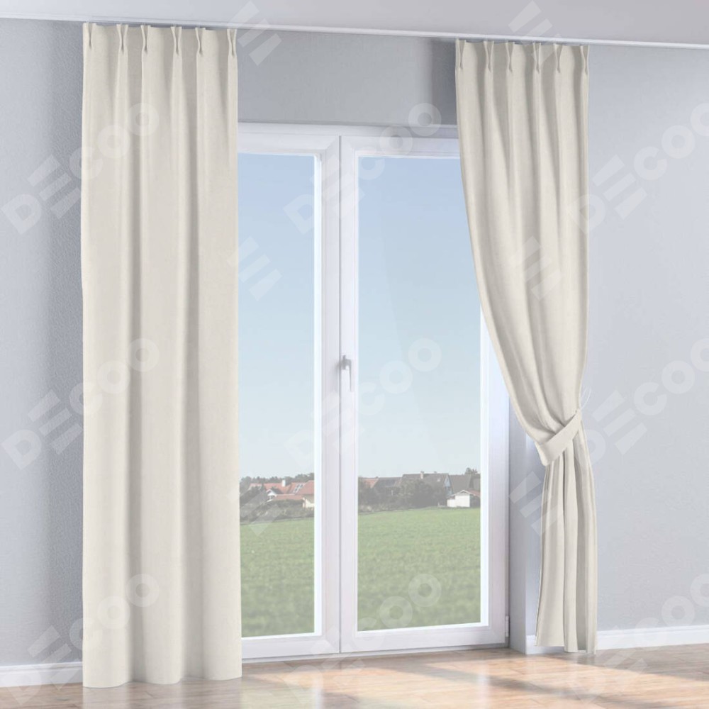 Комплект прямых штор, от производителя «Cortin», пошиты из ткани блэкаут с блеском светло-серый, артикул ткани 34633. С изнаночной стороны в верхней части штор пристрачивается шторная лента с декоративными складками «Кустик». Обратная сторона основного материала черного цвета, что обеспечивает необходимую светонепроницаемость. Для создания элегантных складок прямые шторы шьются по стандарту с коэффициентом 1:2 (на 100 см. ширины проёма 200 см. ширины ткани).