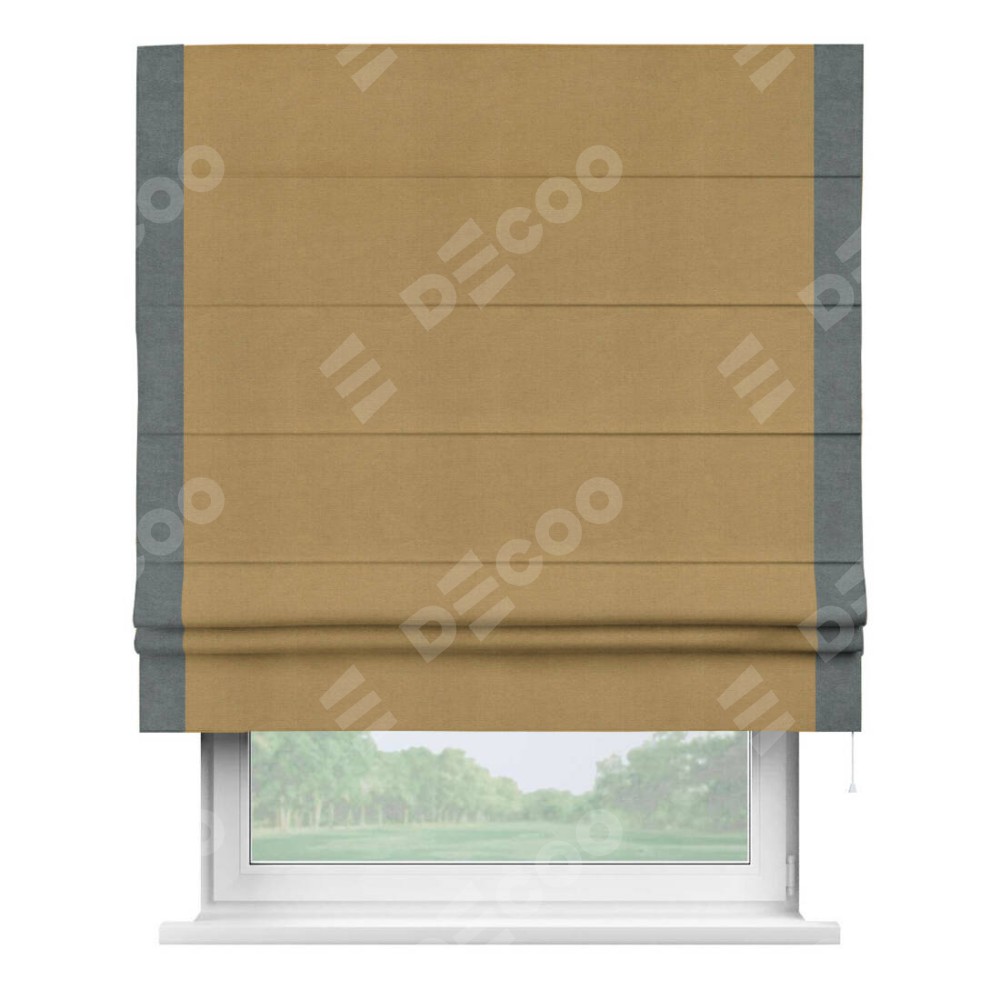 Римская штора «Кортин» с кантом Стрим Дуо, для проема, ткань вельвет горчица
