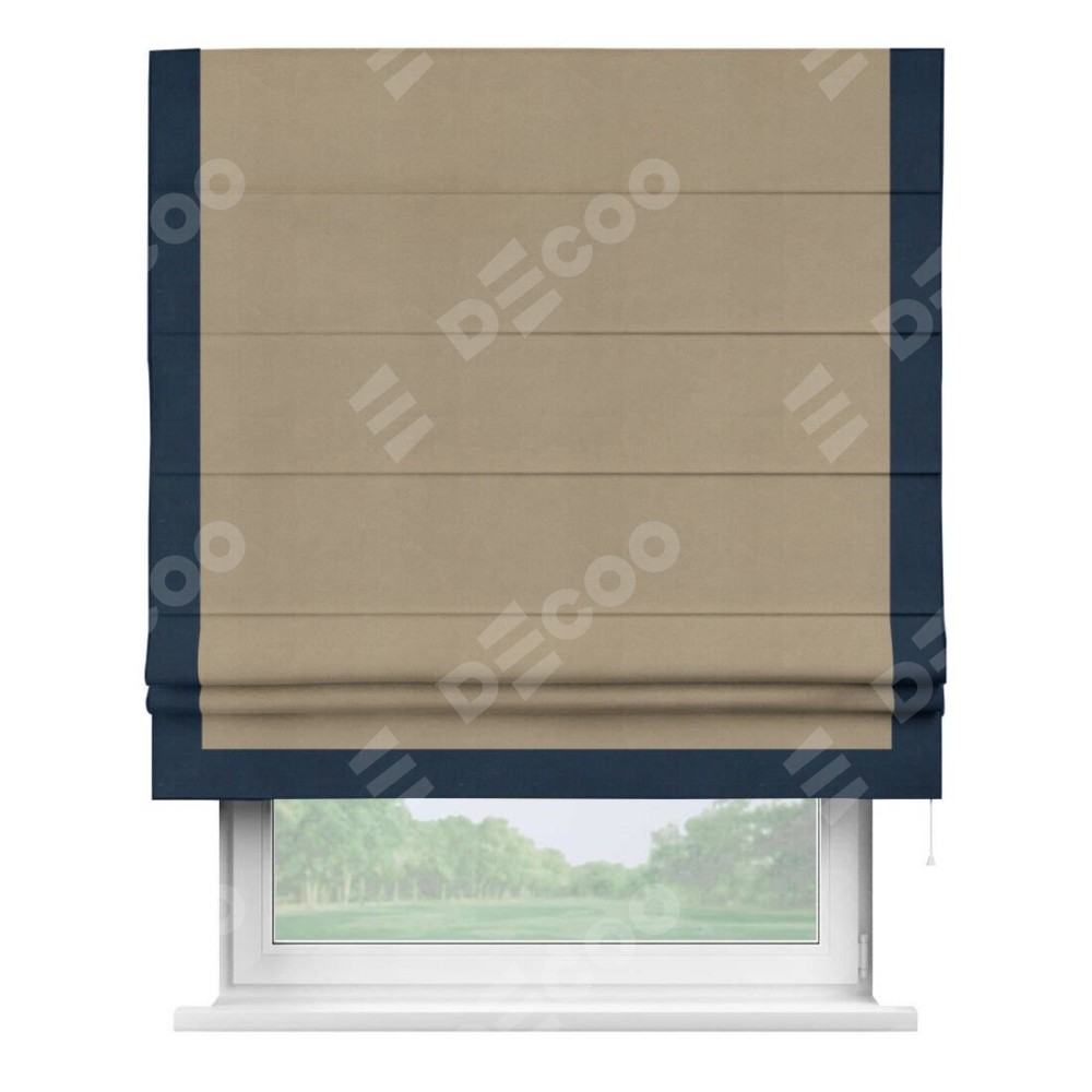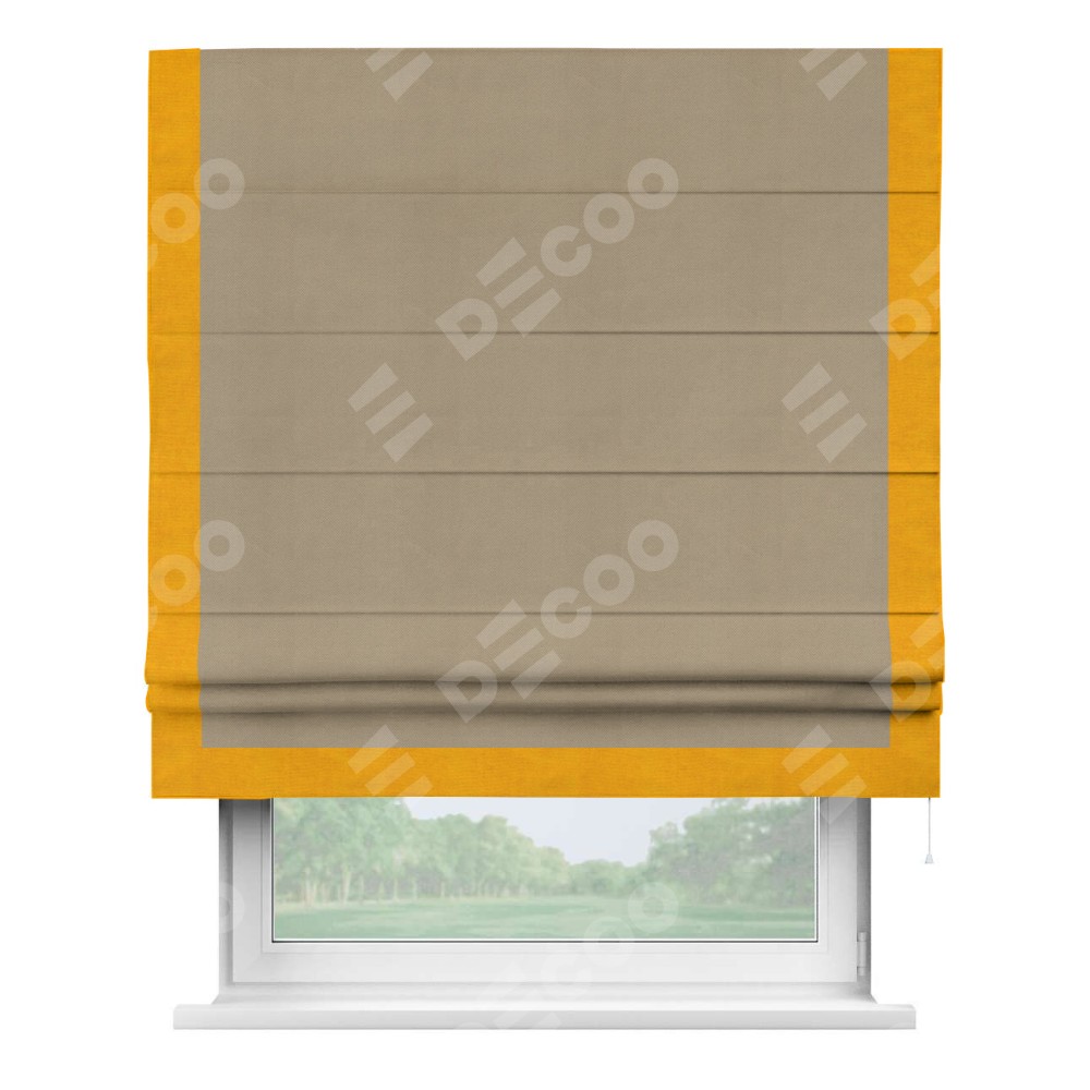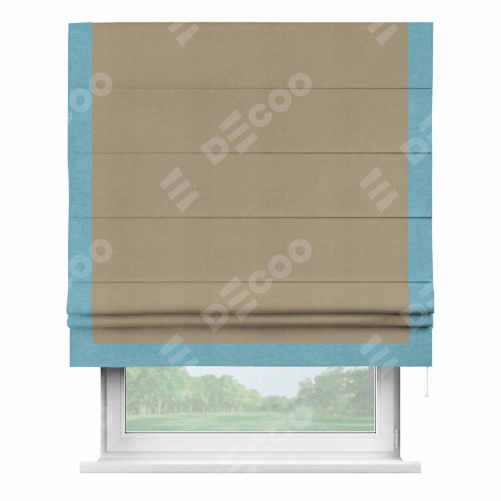 Римская штора производителя «Cortin», используется для проёма, пошита из ткани вельвет кофейный, артикул ткани 30980. Отделка шторы кантом «Виктория», ткань для канта используется из вельвета разной расцветки на выбор. Имеет универсальный механизм и подходит для монтажа: на потолок, на стену и в нишу.