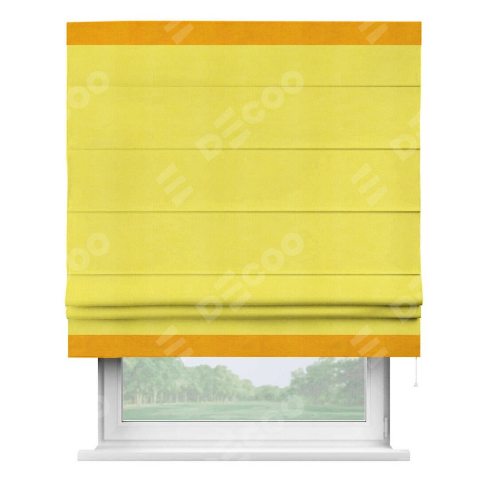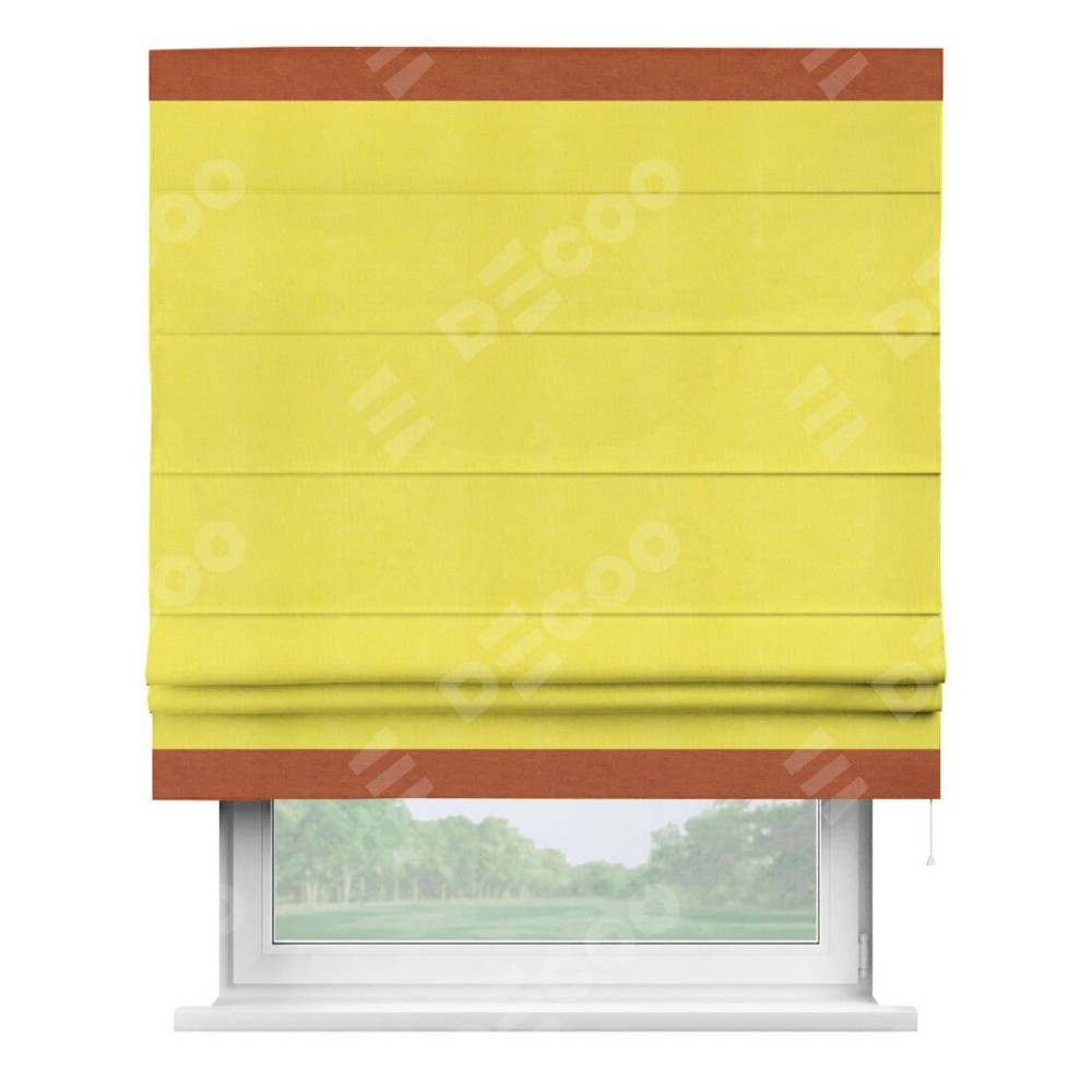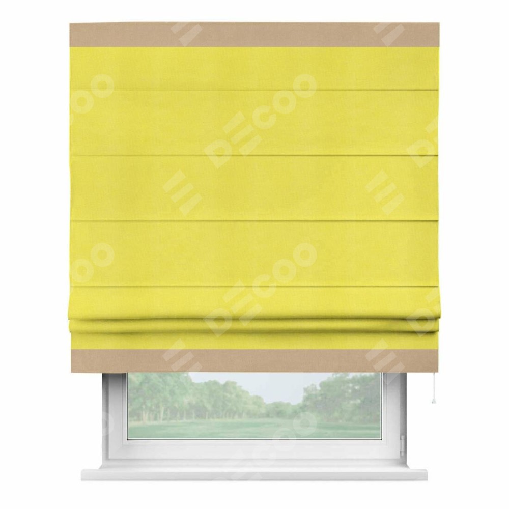 Римская штора «Кортин» с кантом Горизонт, для проема, ткань вельвет cветло-желтый